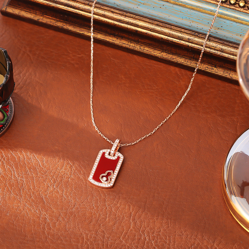 Rhinestone Brass Necklace, plated, for woman & enamel & with rhinestone, rose gold color, Sold By PC