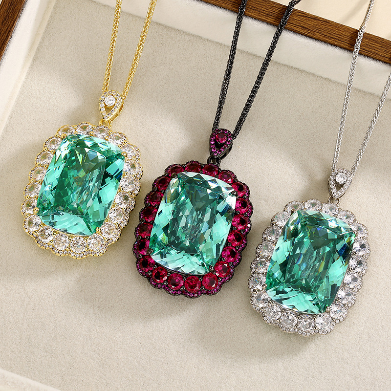 Platinum Para green pendant with Chopin chain
