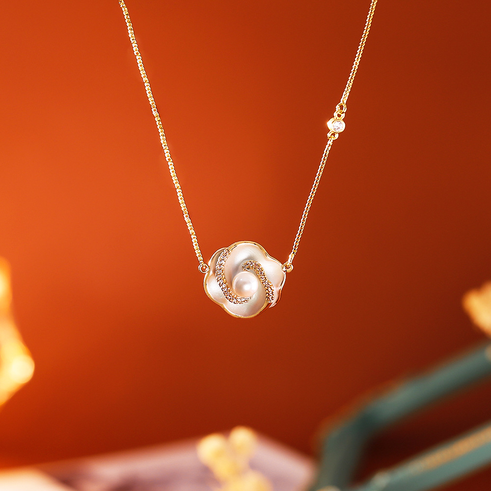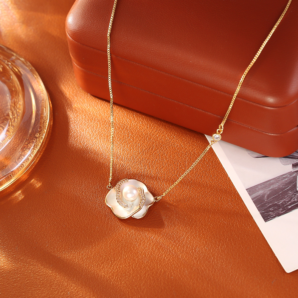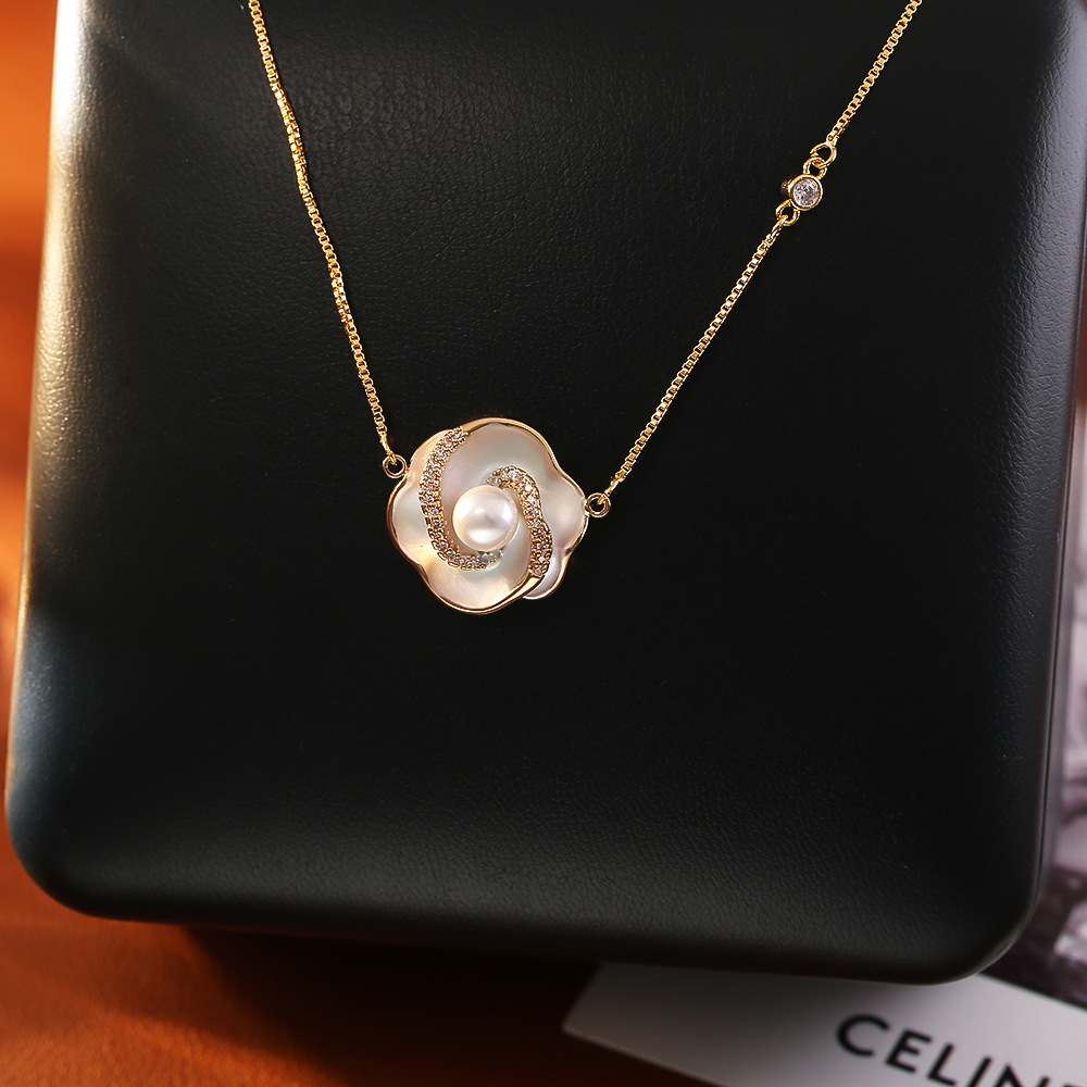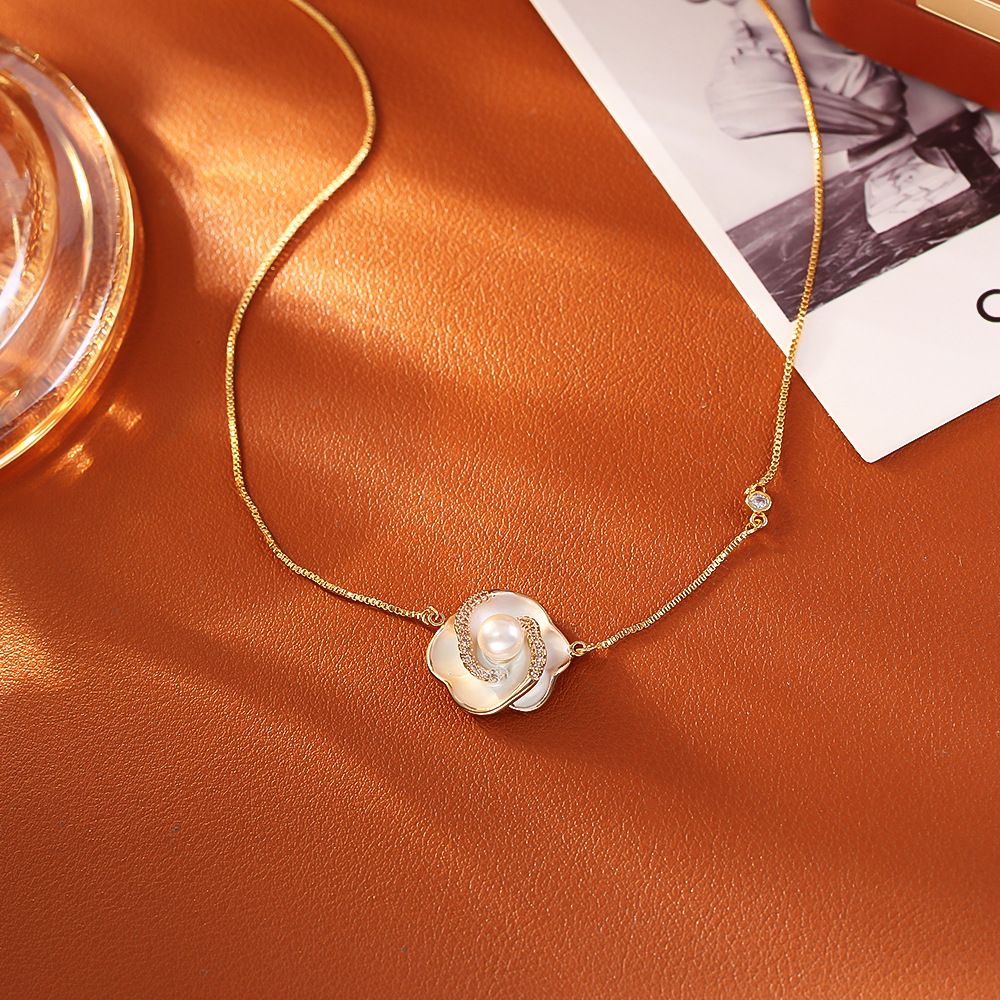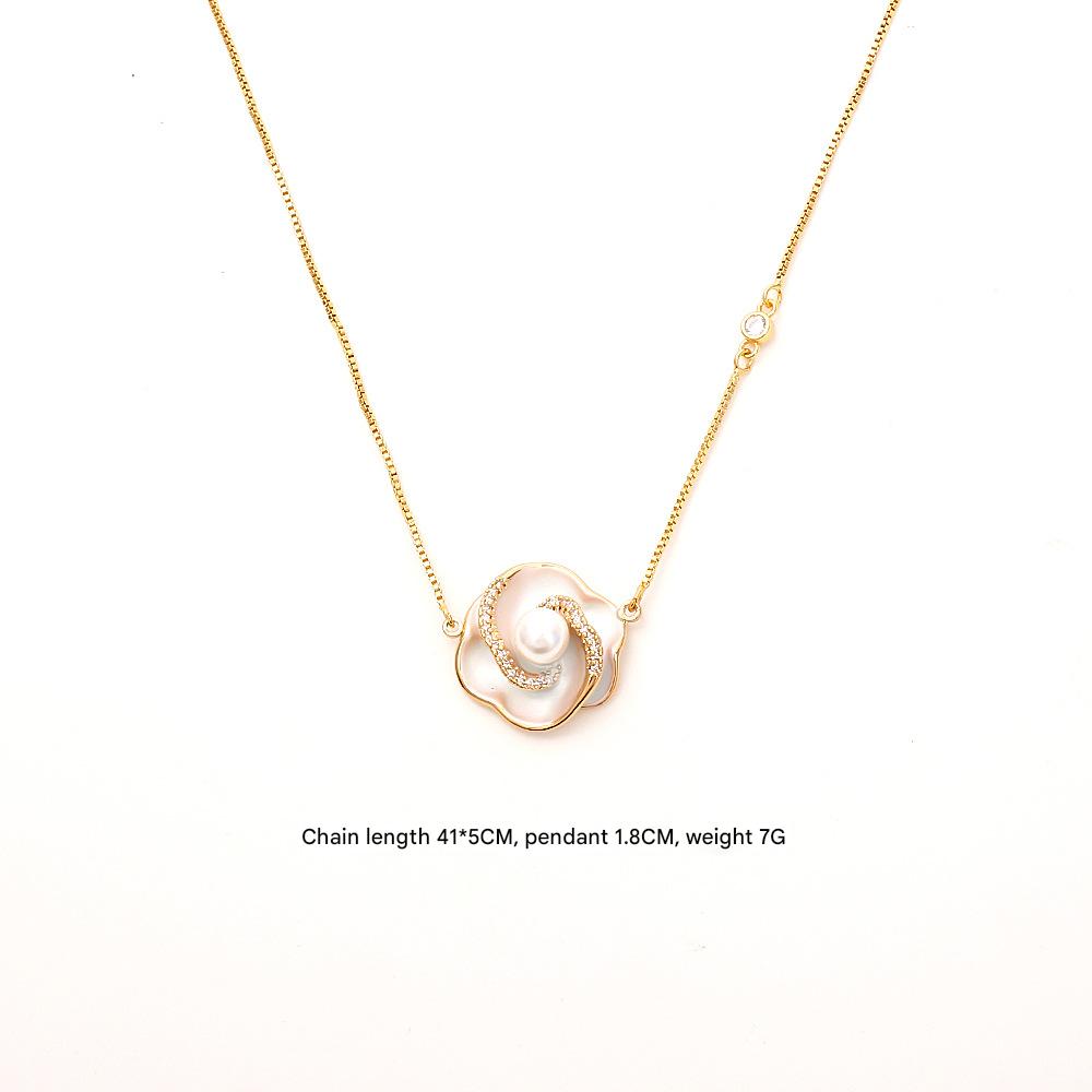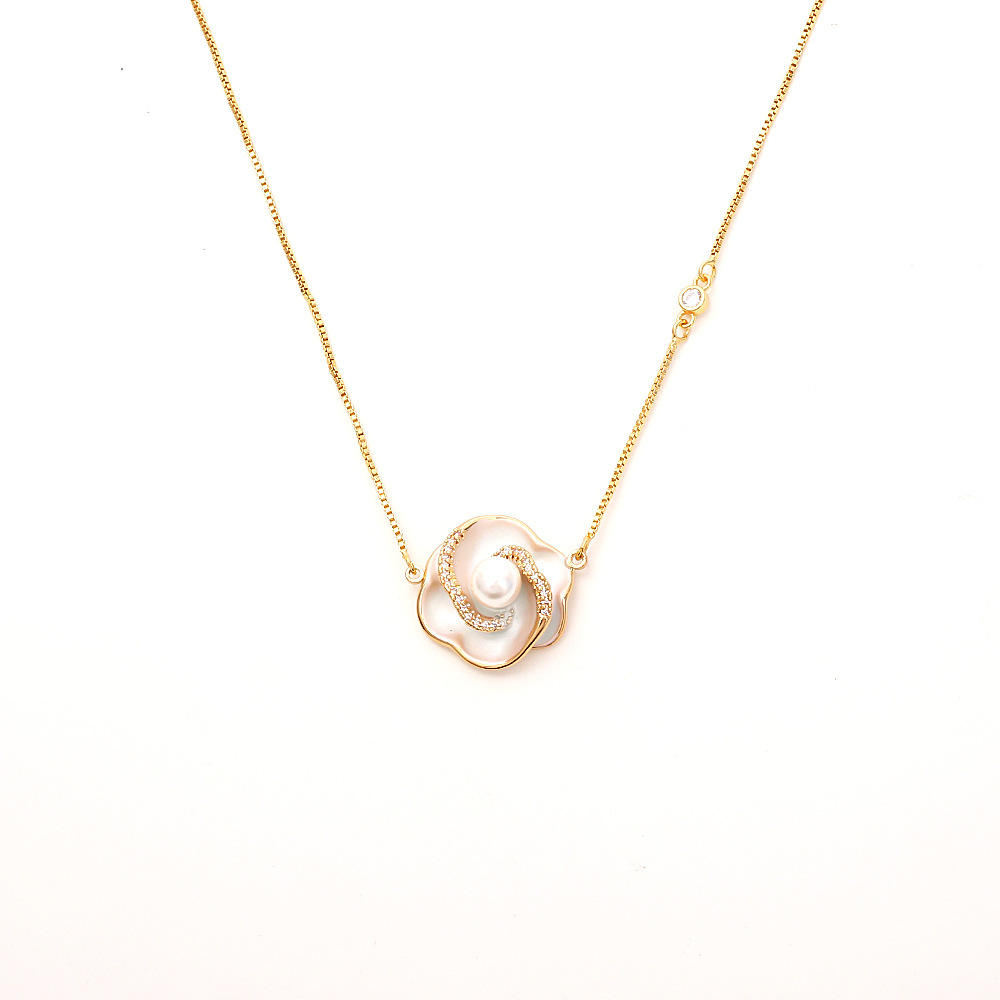 Rhinestone Brass Necklace, with Plastic Pearl, gold color plated, for woman & enamel & with rhinestone, Sold By PC