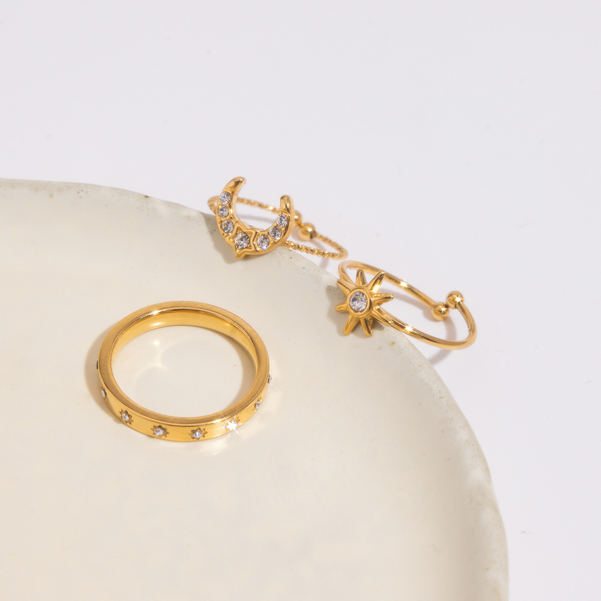Rhinestone Stainless Steel Finger Ring, 304 Stainless Steel, with Gemstone, gold color plated, fashion jewelry & with rhinestone, more colors for choice, Sold By PC