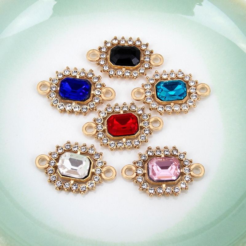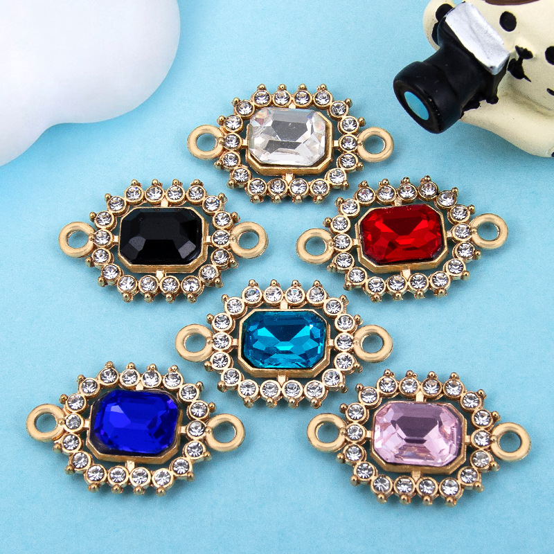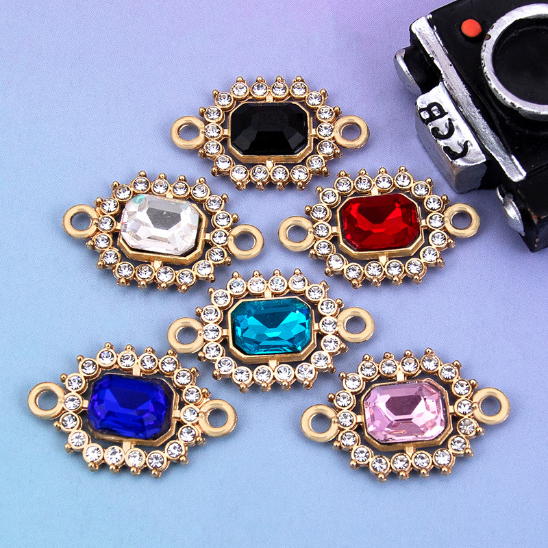 Rhinestone Zinc Alloy Connector, gold color plated, DIY & with rhinestone & 1/1 loop, more colors for choice, 22x14mm, Sold By PC