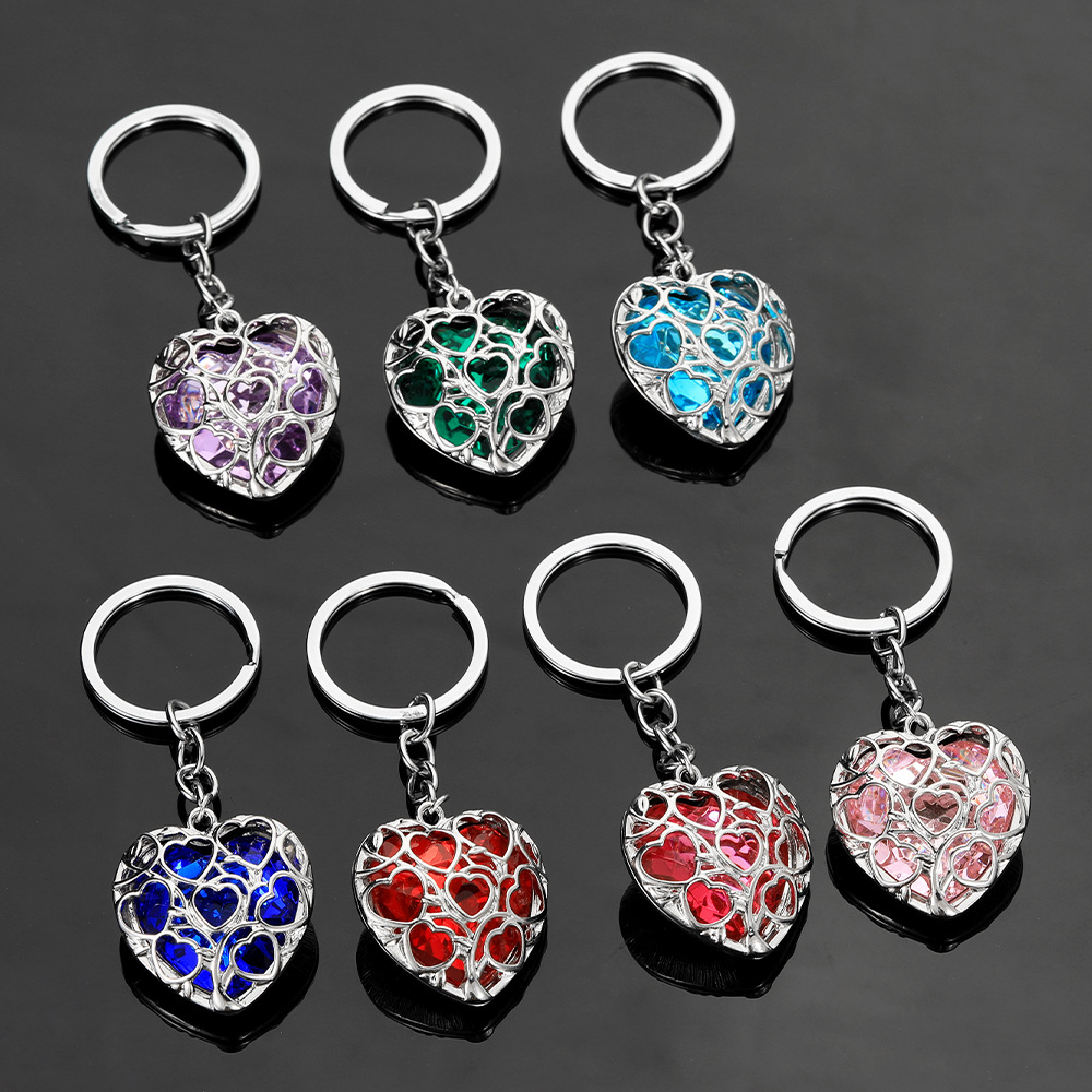 Rhinestone Zinc Alloy Key Chain, with Rhinestone, Unisex & hollow, more colors for choice, Sold By PC