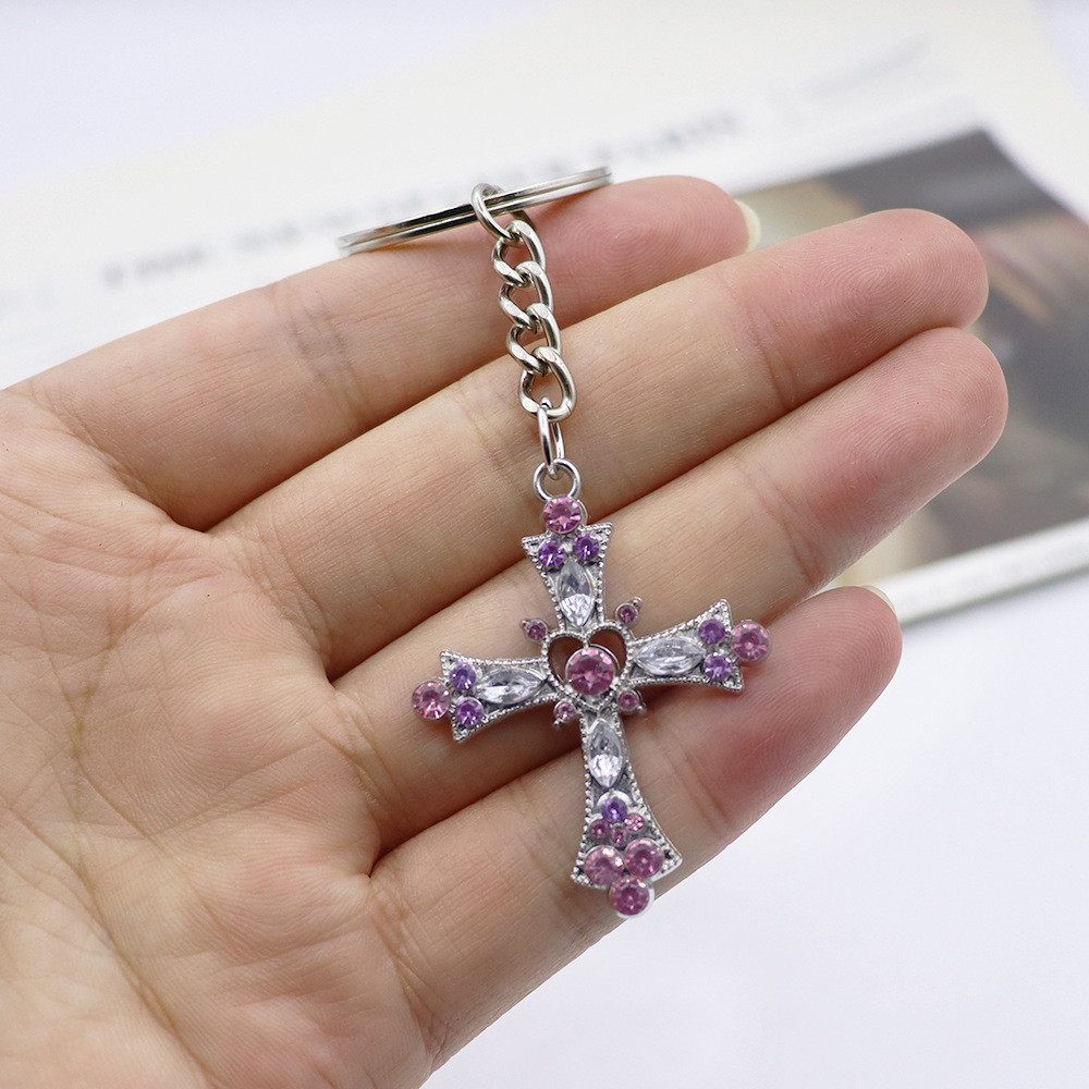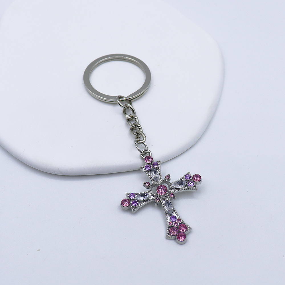 Rhinestone Zinc Alloy Key Chain, Cross, gold color plated, fashion jewelry & with rhinestone, more colors for choice, Sold By PC