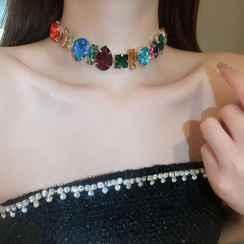 Rhinestone Zinc Alloy Necklace, with 1.96inch extender chain, Claw, silver color plated, Unisex & box chain & enamel & with rhinestone Approx 17.7 Inch