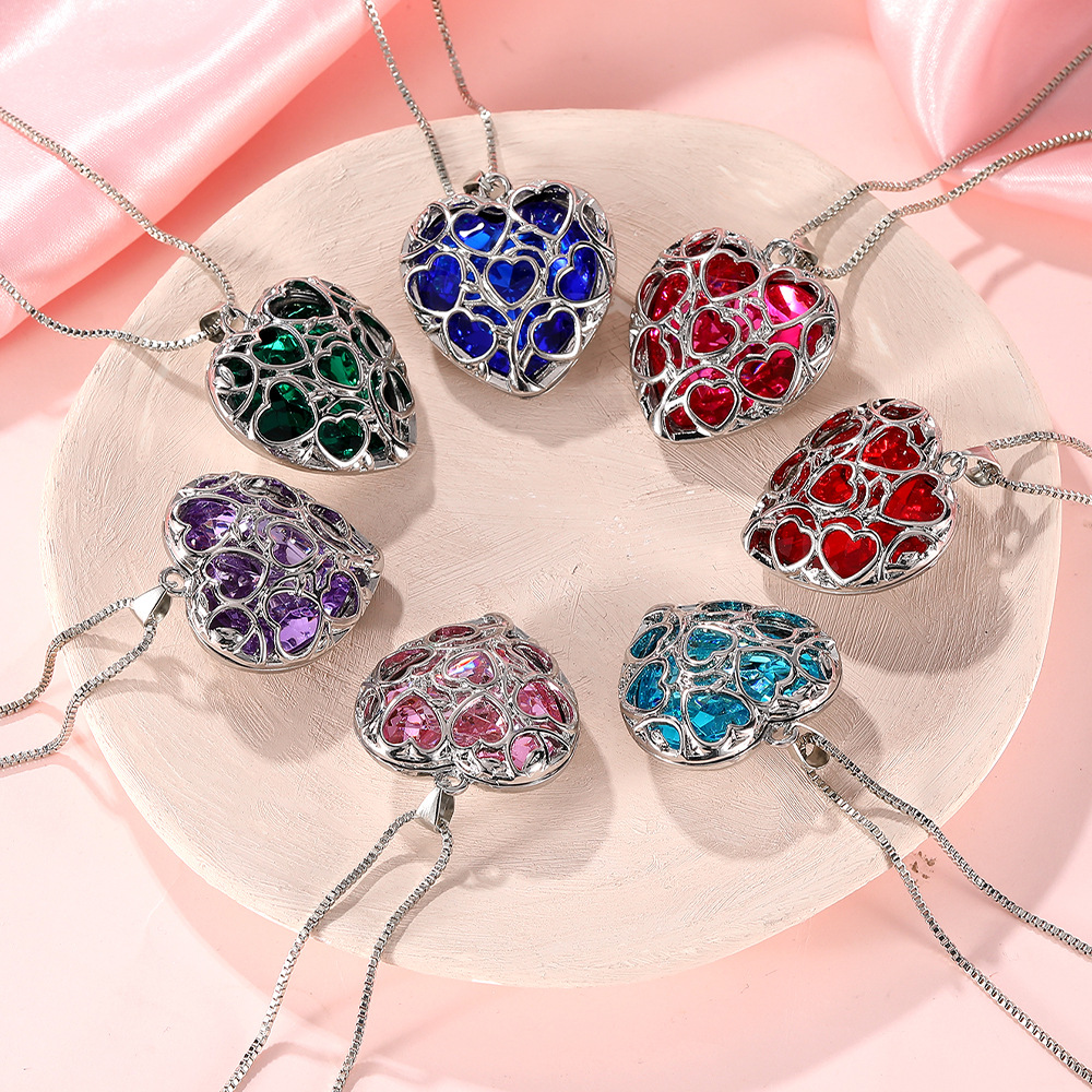 Rhinestone Zinc Alloy Necklace, Heart, with rhinestone Approx 5mm .5 Inch