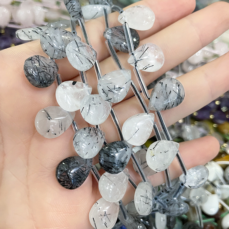 Rutilated Quartz Beads, Tourmalinated Quartz, Teardrop, DIY, mixed colors, 14x10x5mm, Length:38 cm, Sold By Strand