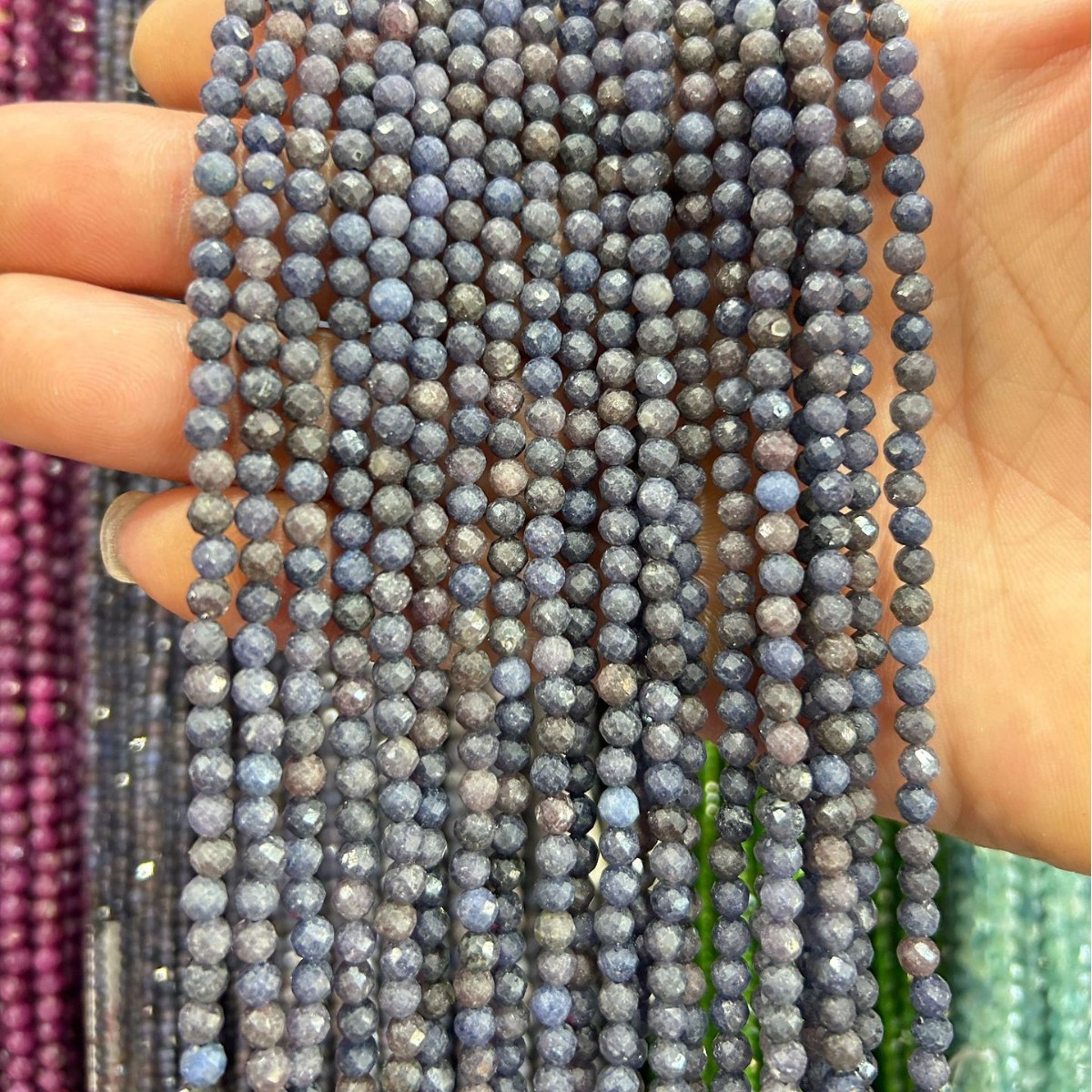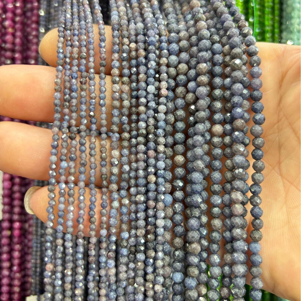 Sapphire Beads, Round, polished, DIY & different size for choice & faceted, Length:Approx 38 cm, Sold By Strand