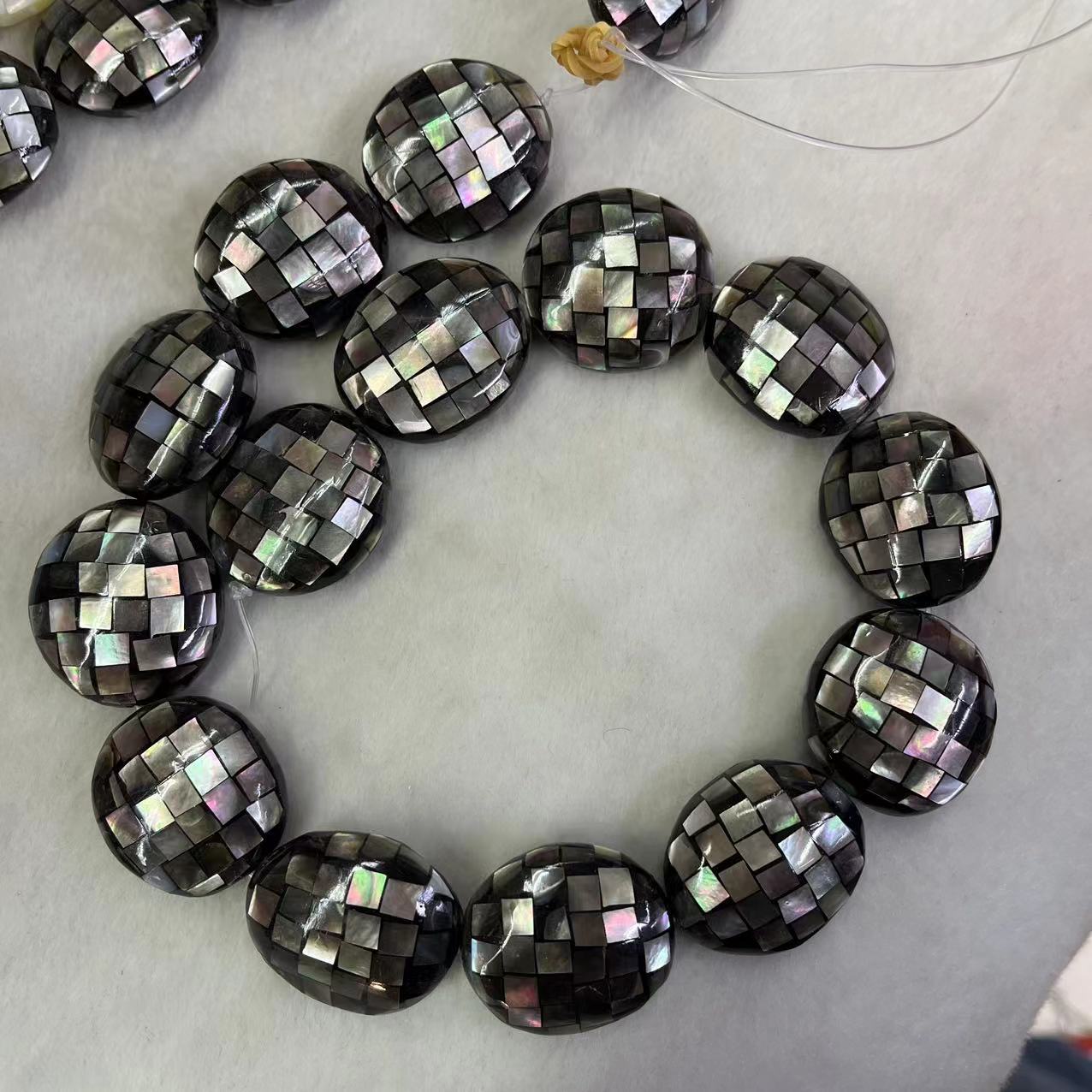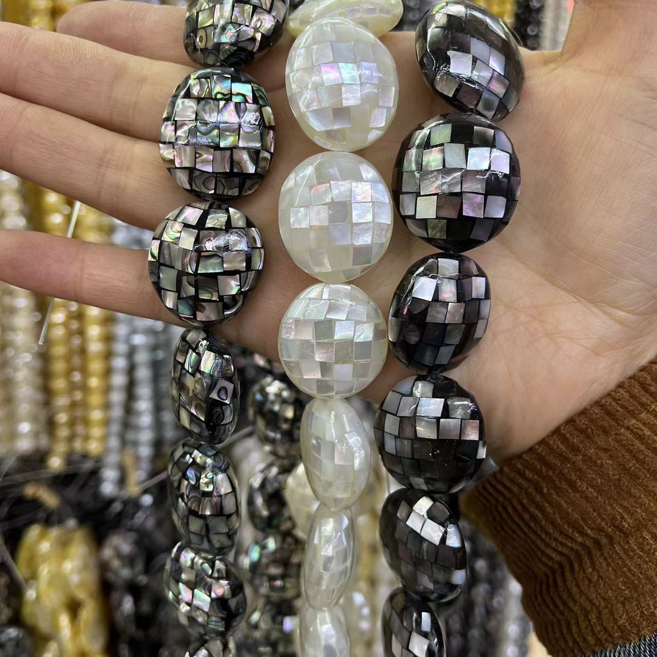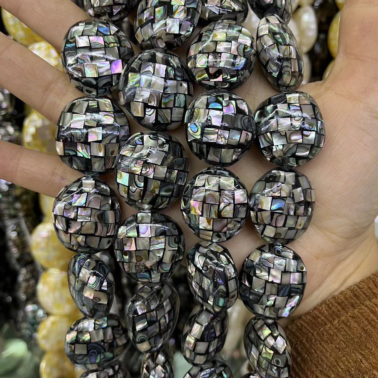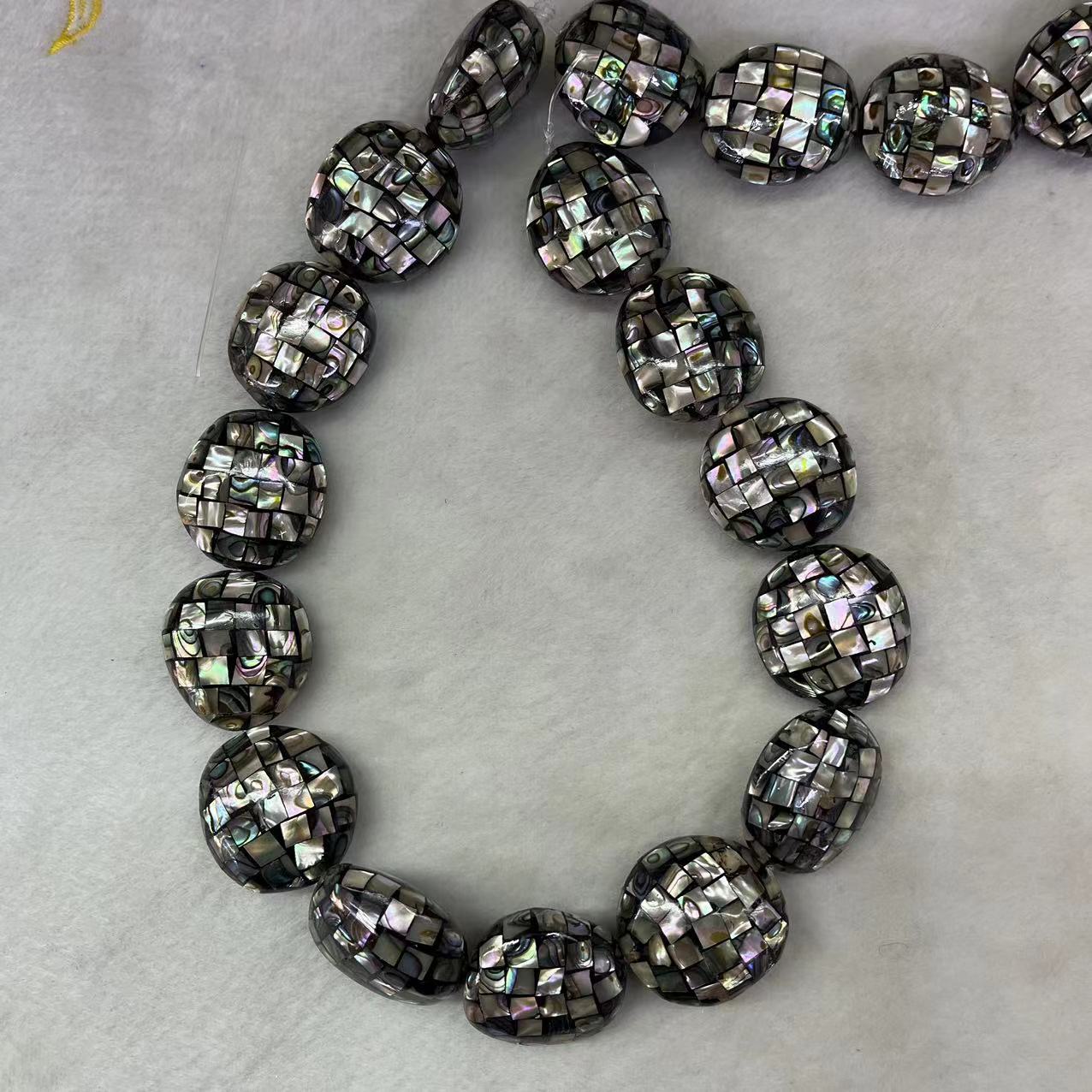 Seashell Beads, White Lip Shell, with Black Shell & Abalone Shell, Oval, DIY, more colors for choice, 25x28mm, Approx 14PCs/Strand, Sold By Strand