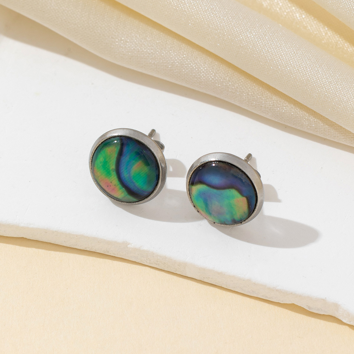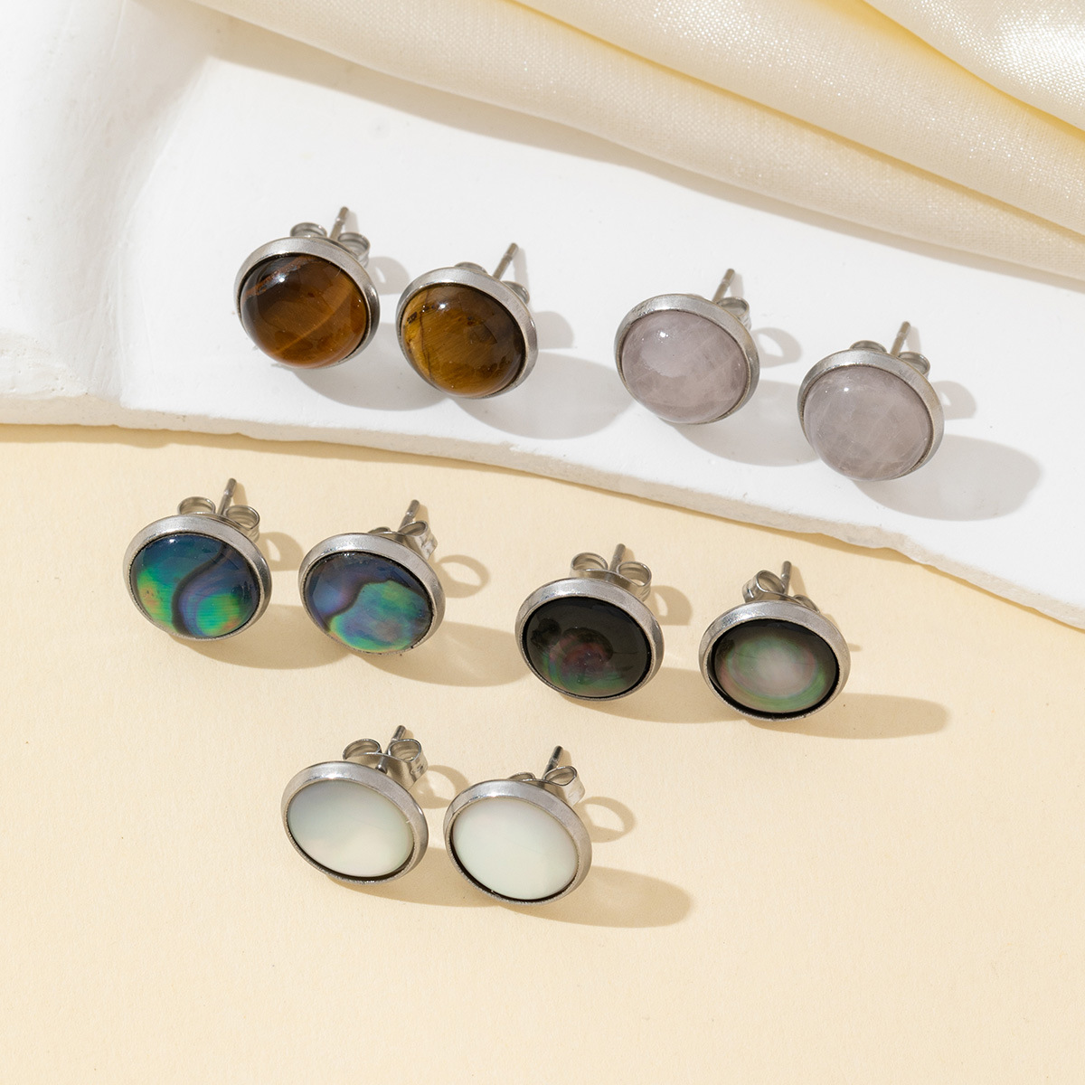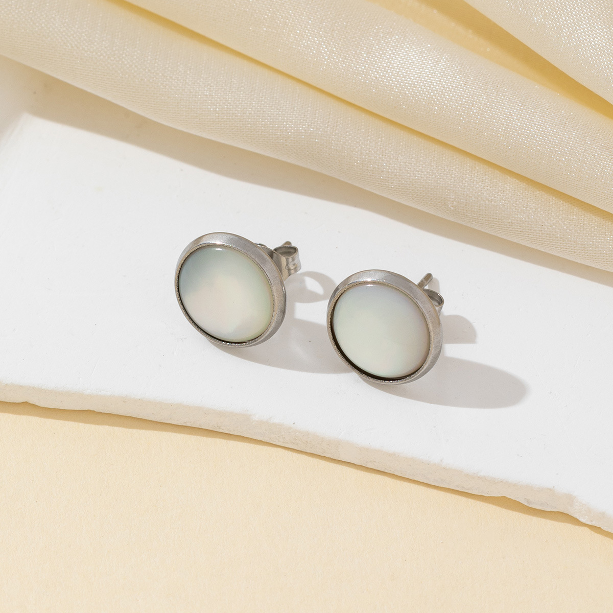 Seashell Earrings, Natural Seashell, stainless steel post pin, Flat Round, plated 8mm