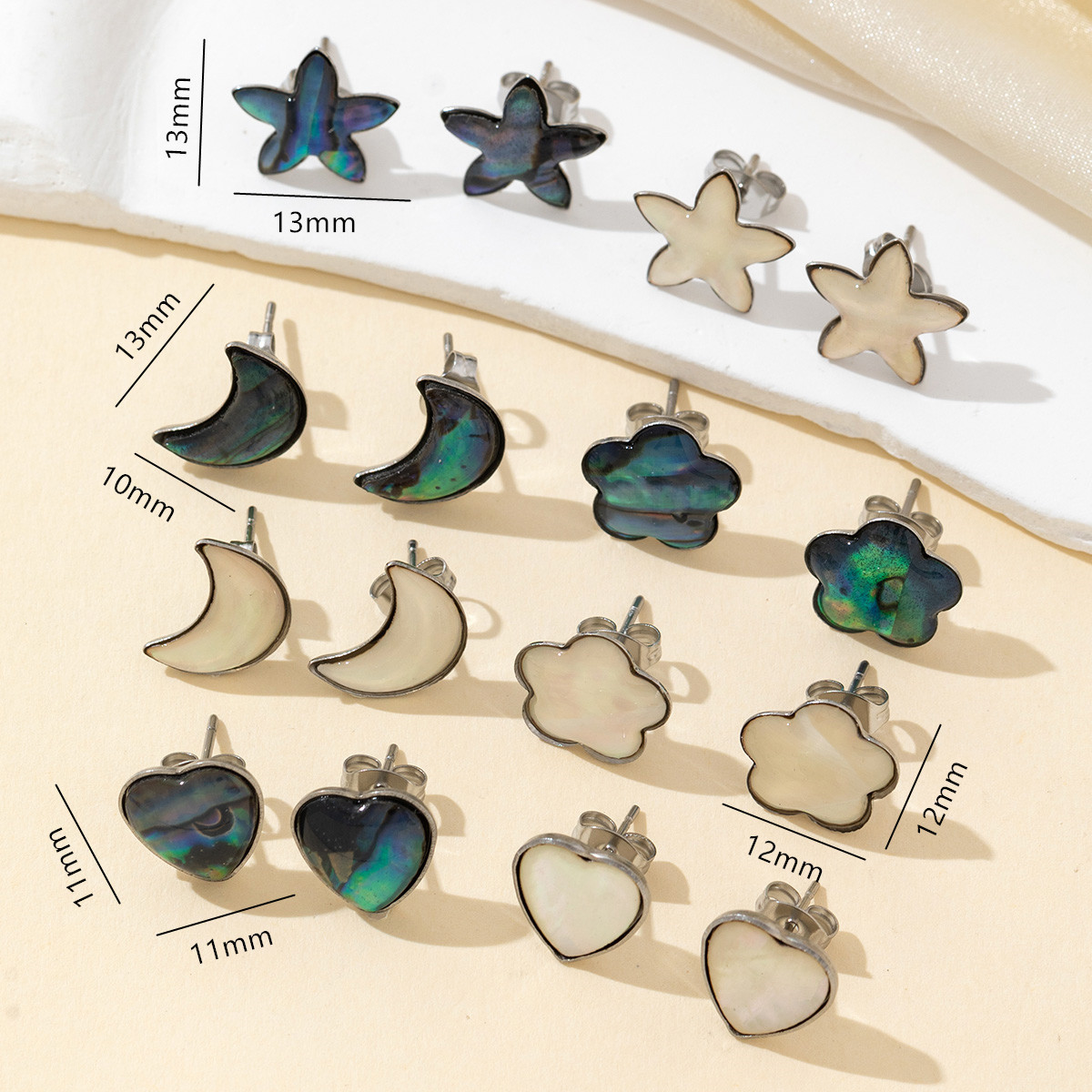 Seashell Earrings, Natural Seashell, stainless steel post pin, Flat Round, plated 8mm