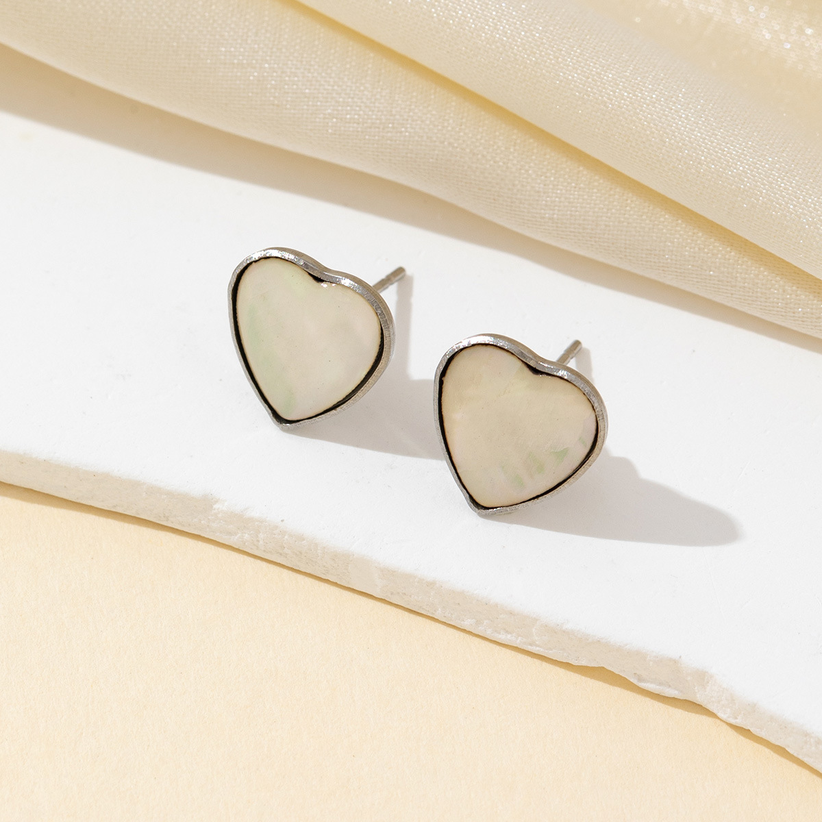 Seashell Earrings, Natural Seashell, stainless steel post pin, Heart, plated