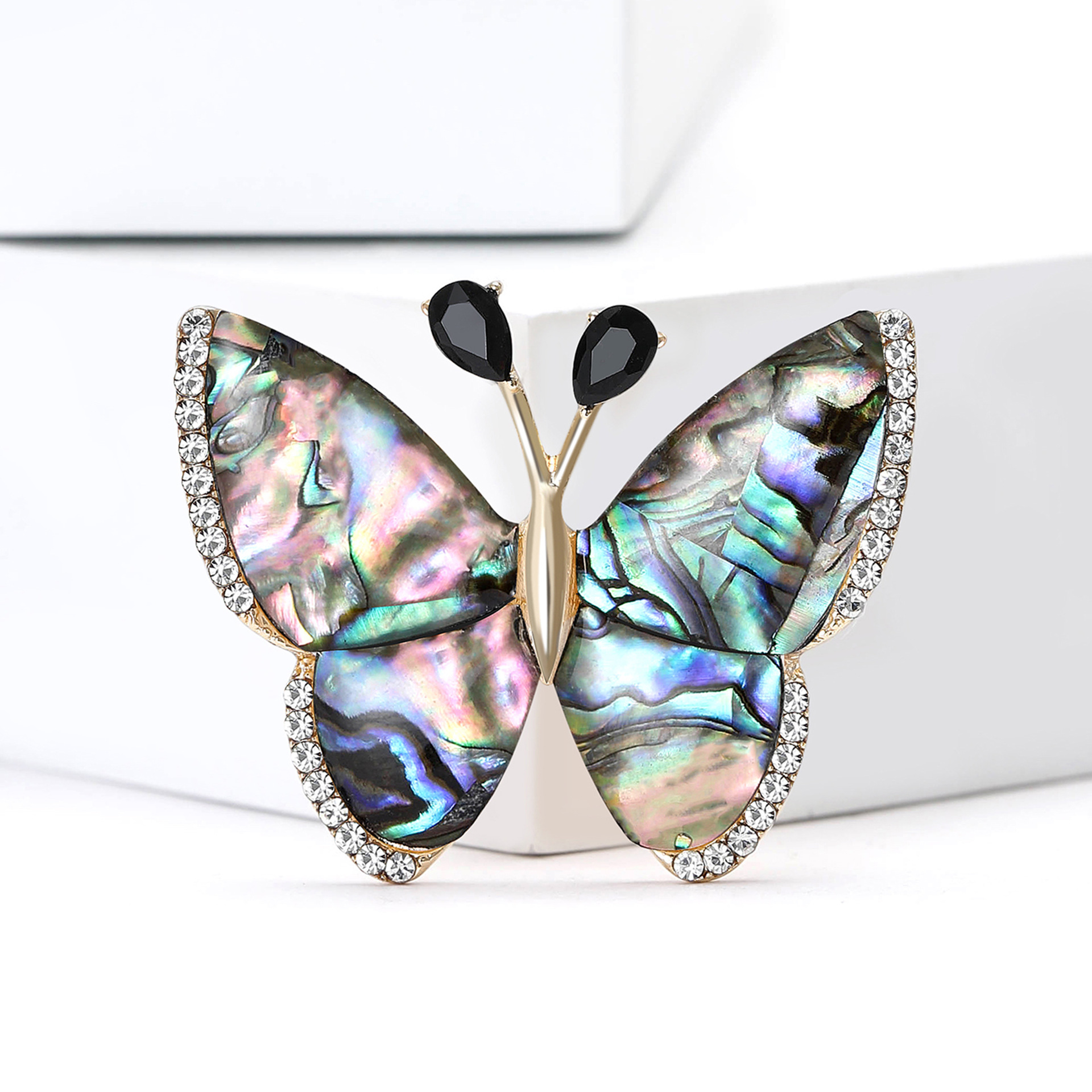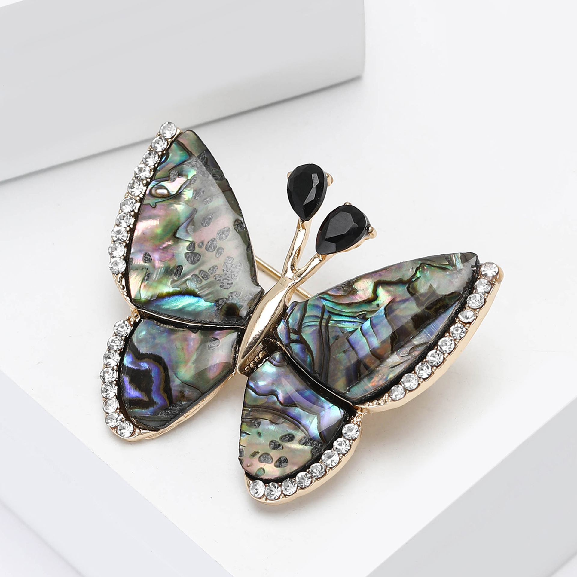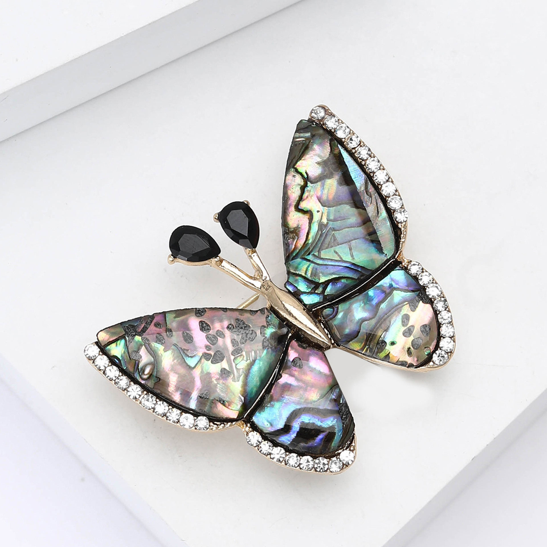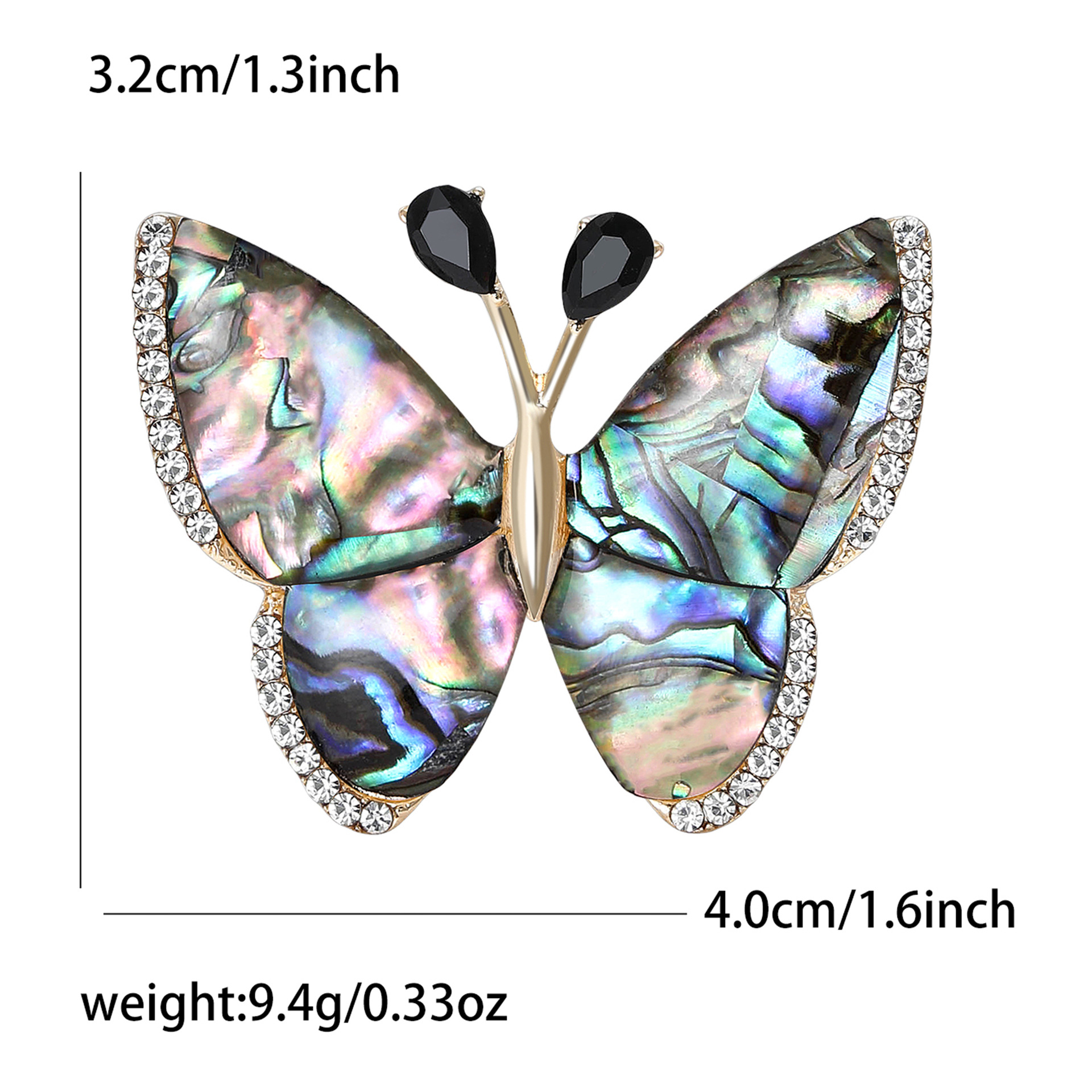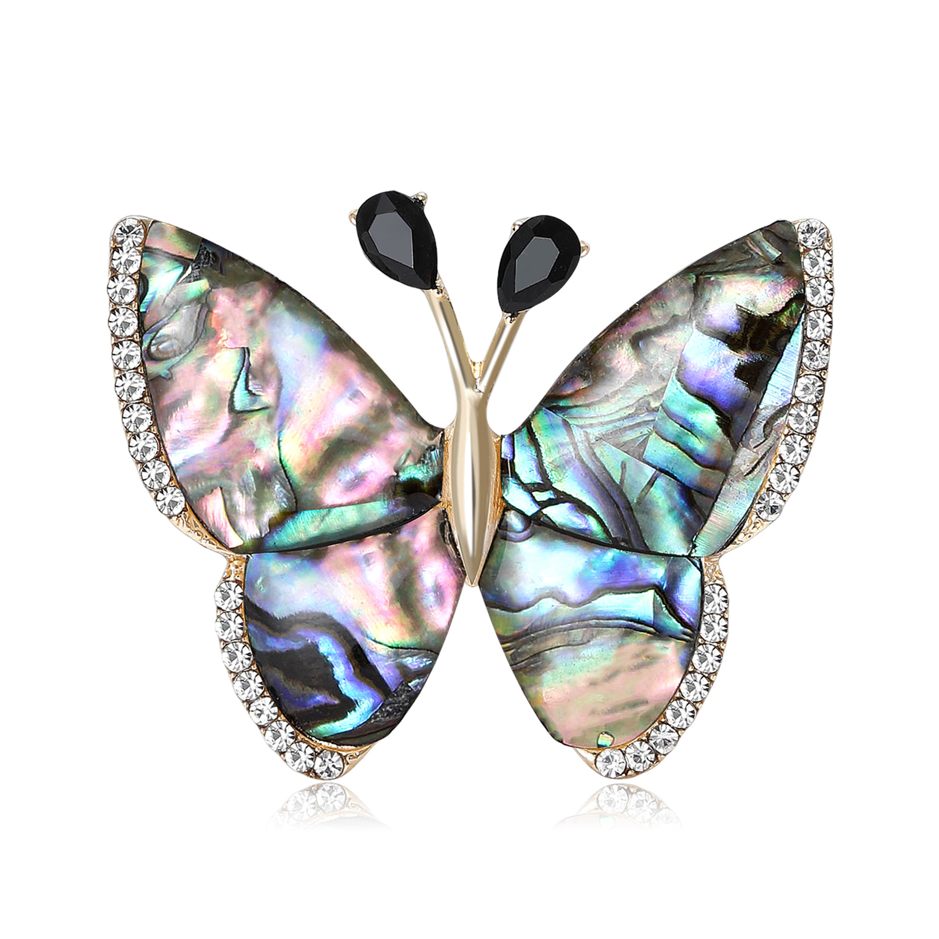 Shell Brooch, Abalone Shell, with Zinc Alloy, Butterfly, gold color plated, for woman & with rhinestone, 40x32mm, Sold By PC