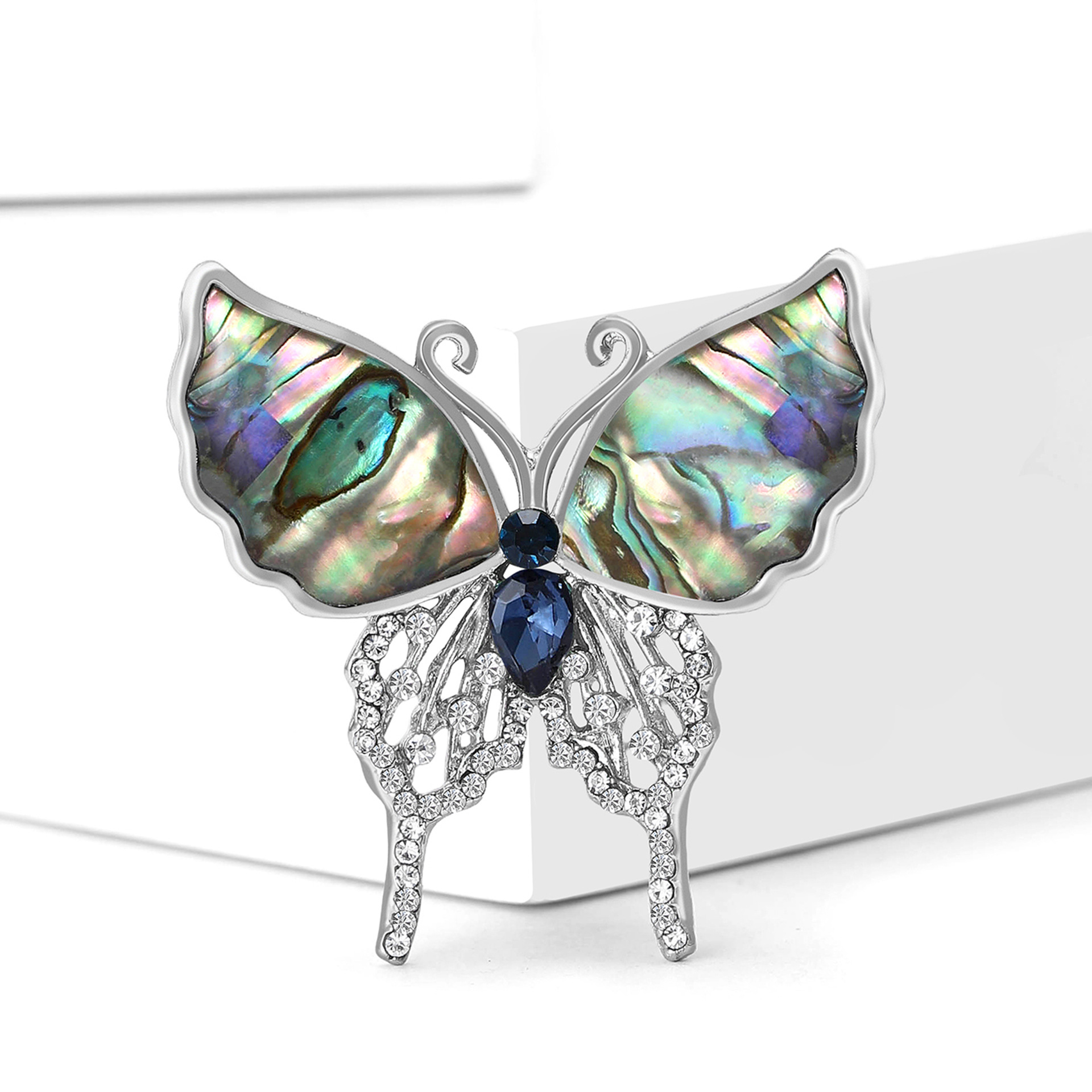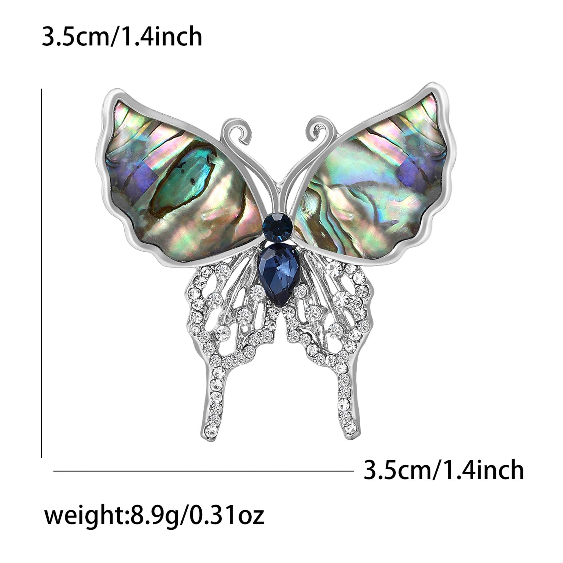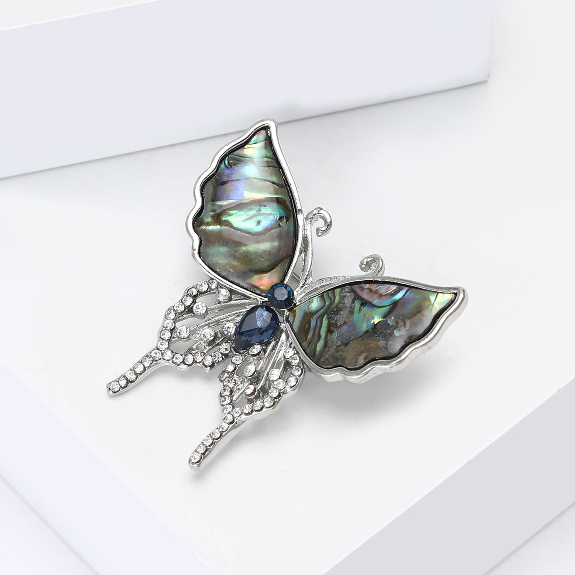 Shell Brooch, Abalone Shell, with Zinc Alloy, Butterfly, silver color plated, fashion jewelry & with rhinestone, mixed colors, Sold By PC