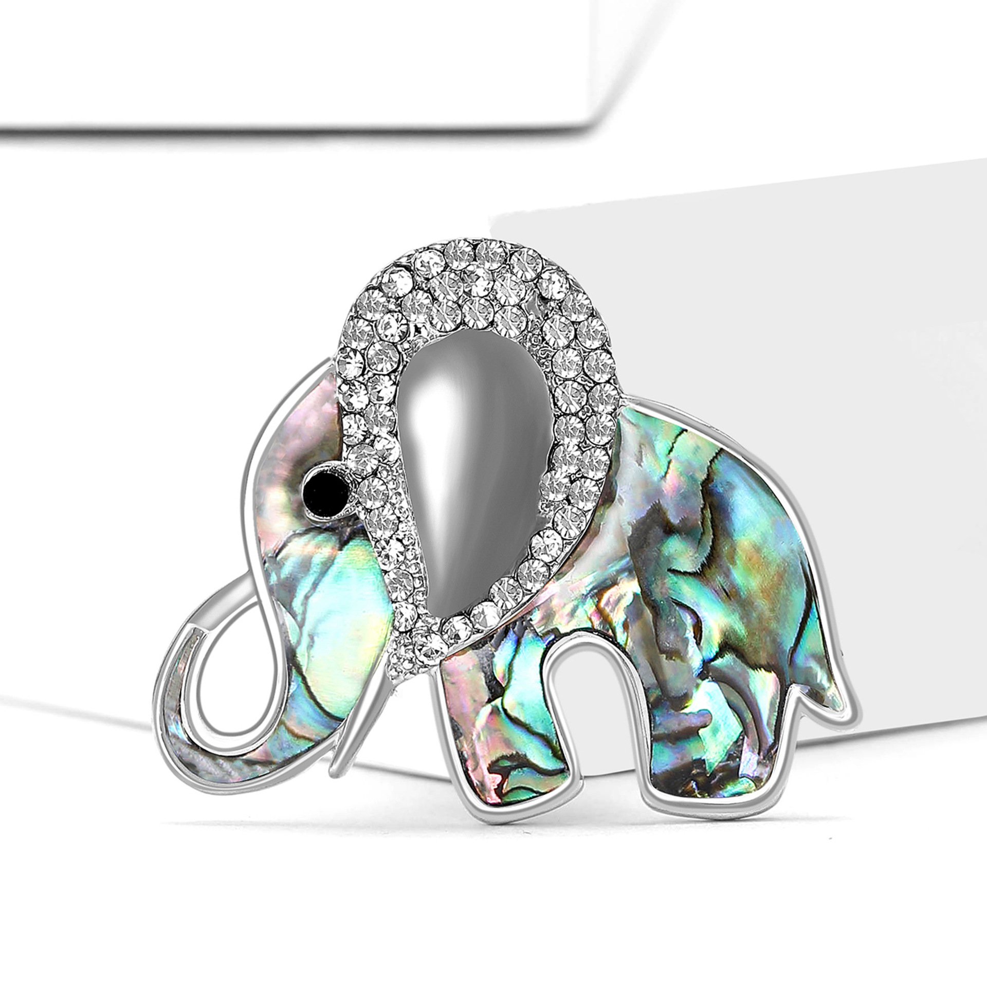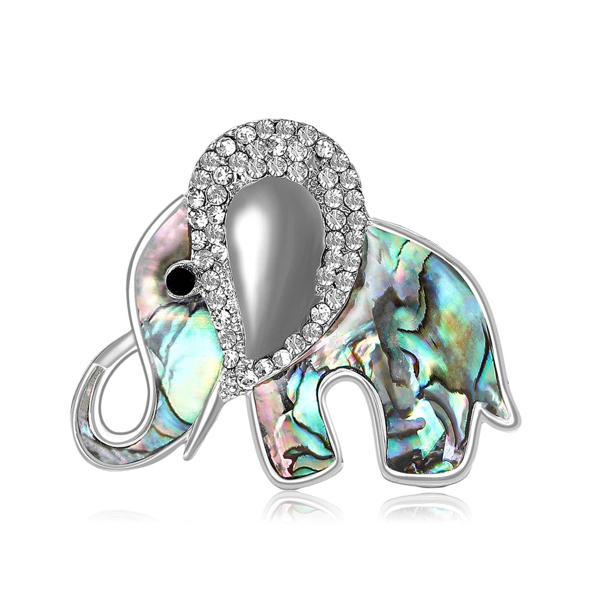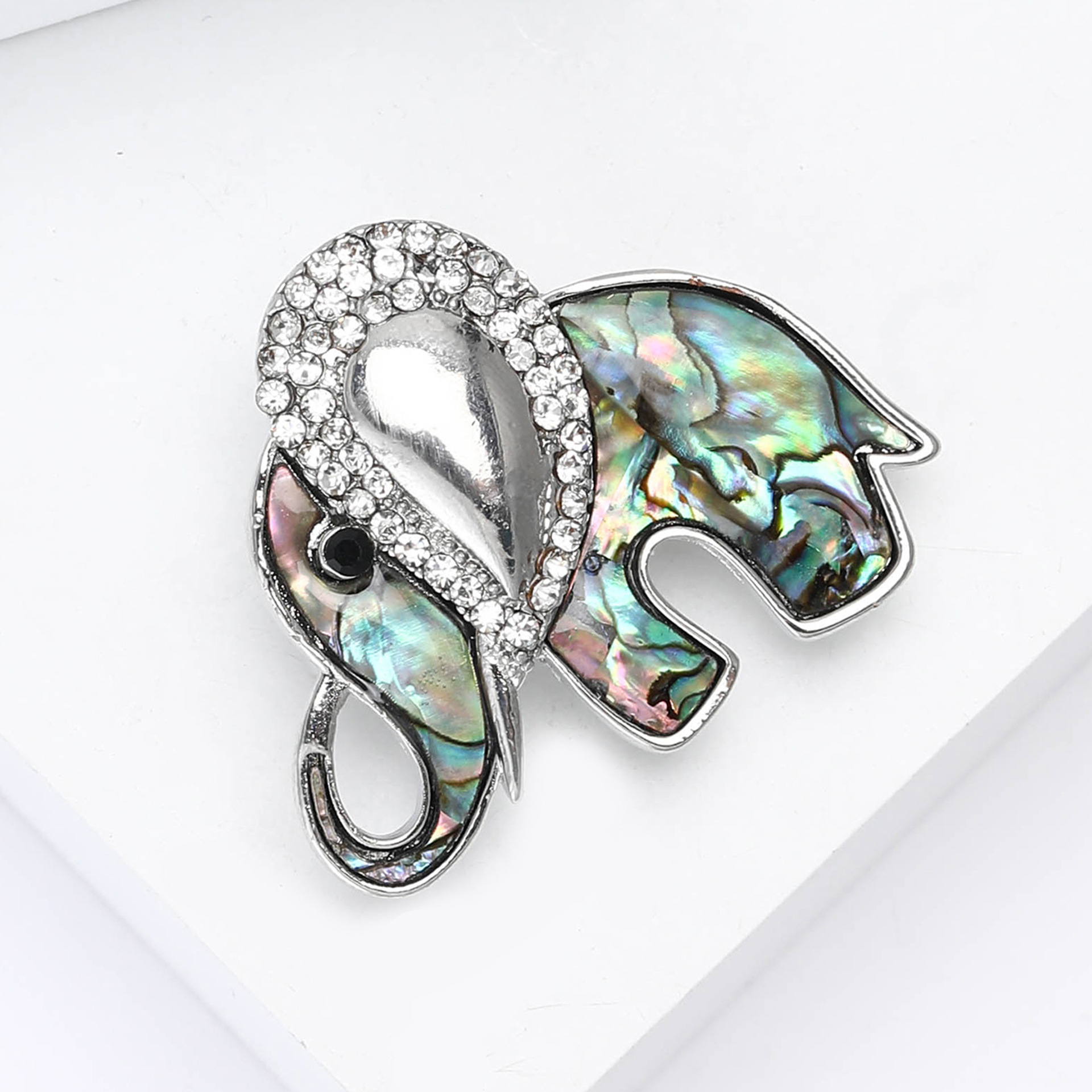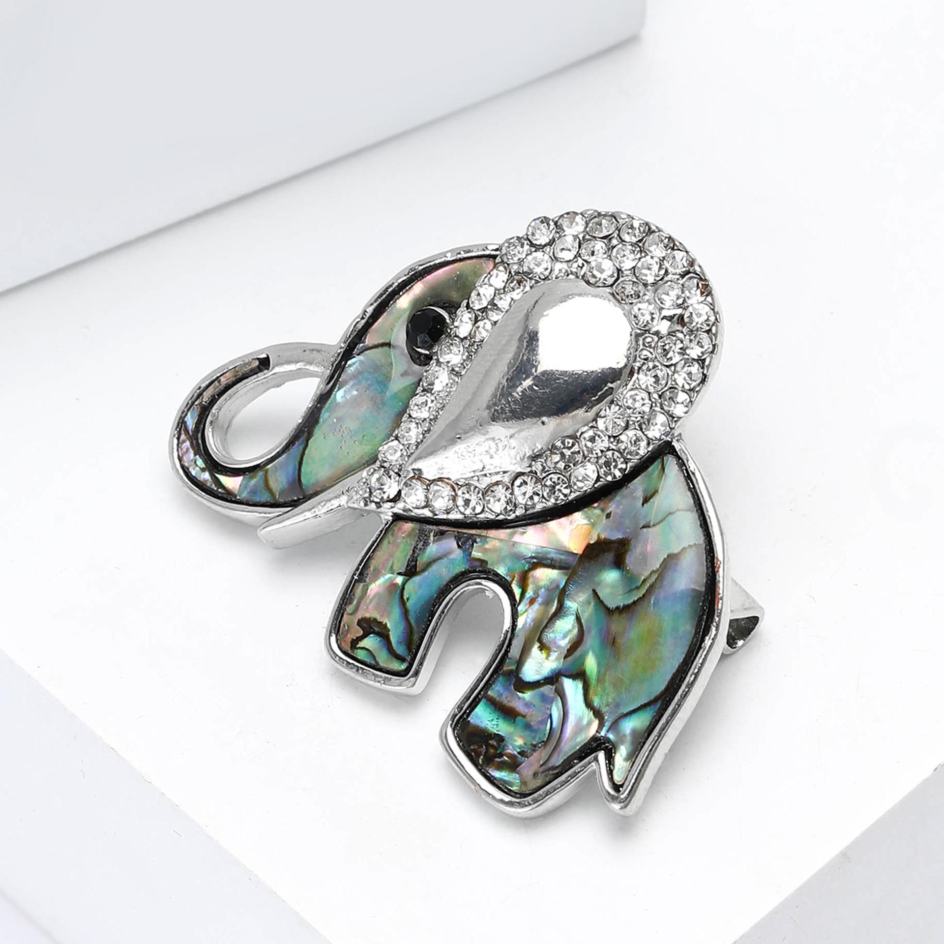 Shell Brooch, Zinc Alloy, with Abalone Shell, Elephant, silver color plated, for woman & with rhinestone, Sold By PC