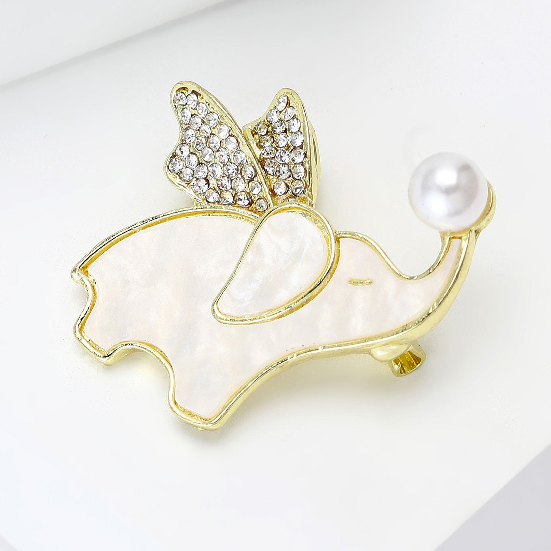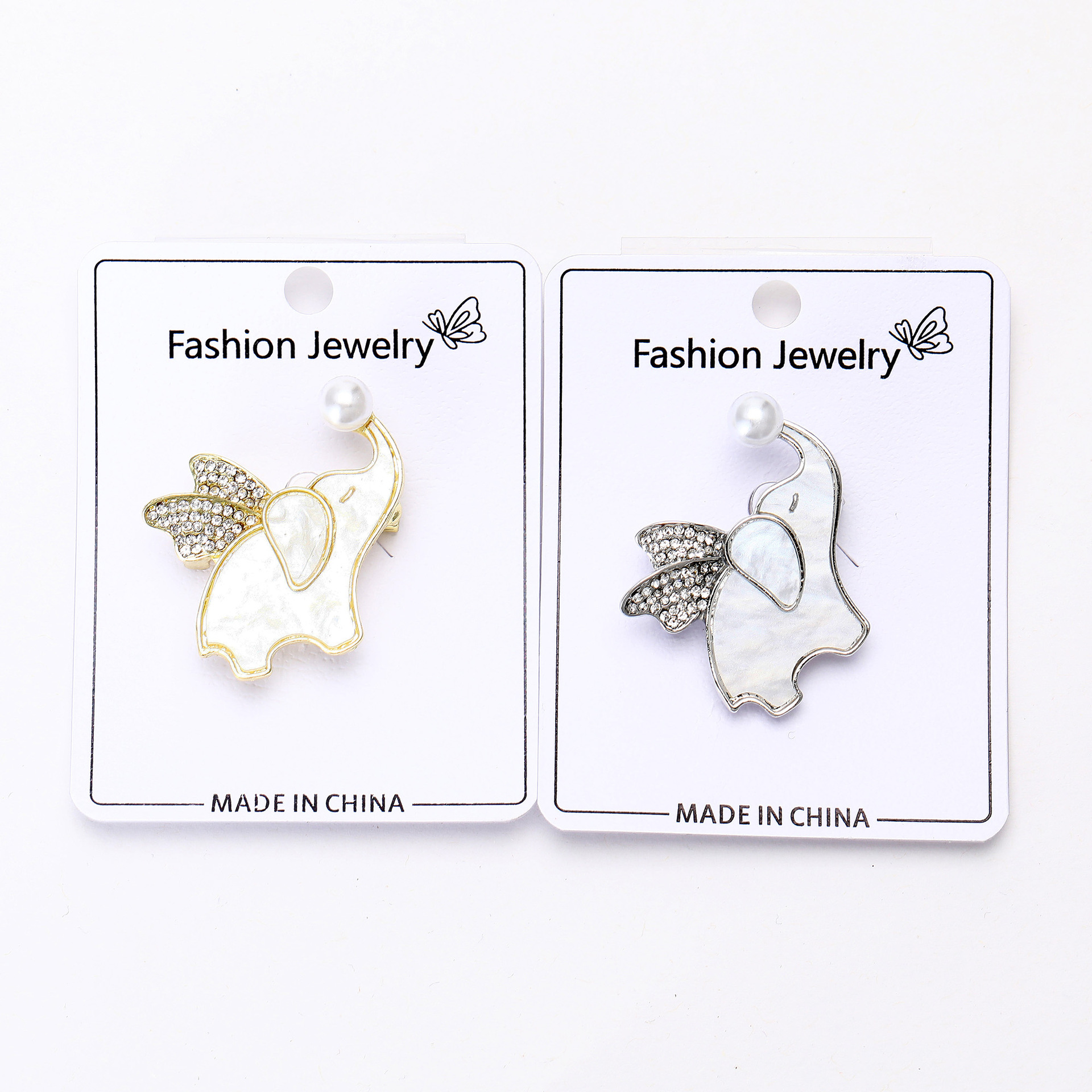 Shell Brooch, Zinc Alloy, with Shell & Plastic Pearl, Elephant, plated, fashion jewelry & with rhinestone, more colors for choice, Sold By PC