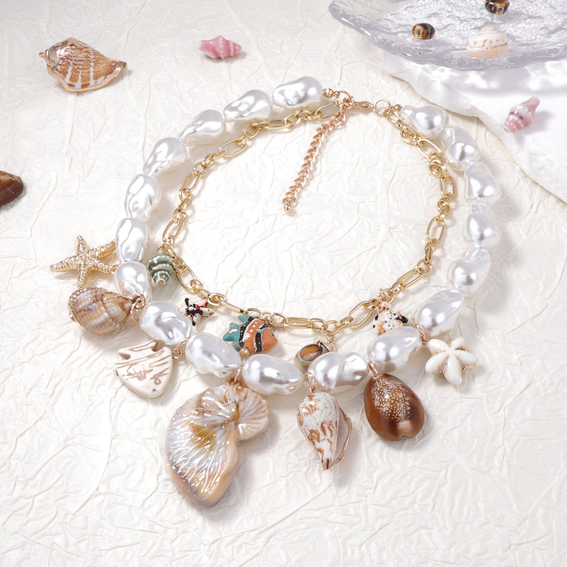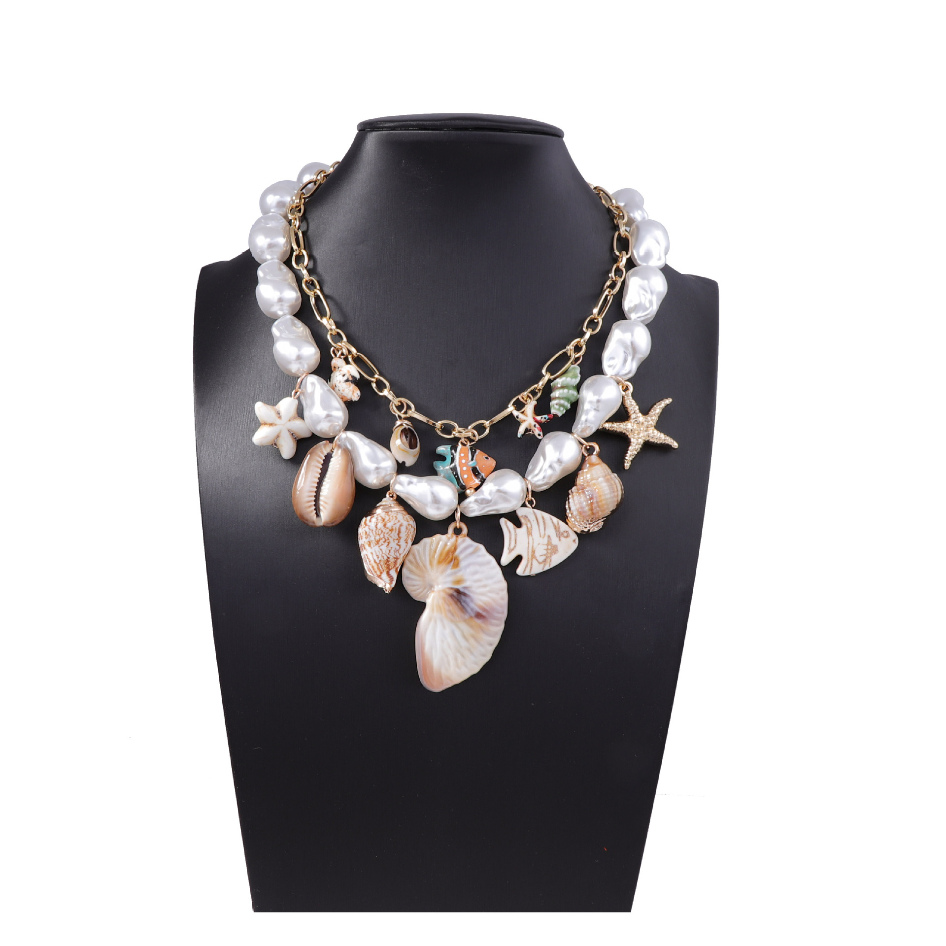 Shell Zinc Alloy Necklace, with Porcelain & Shell, gold color plated, fashion jewelry, mixed colors, Sold By PC
