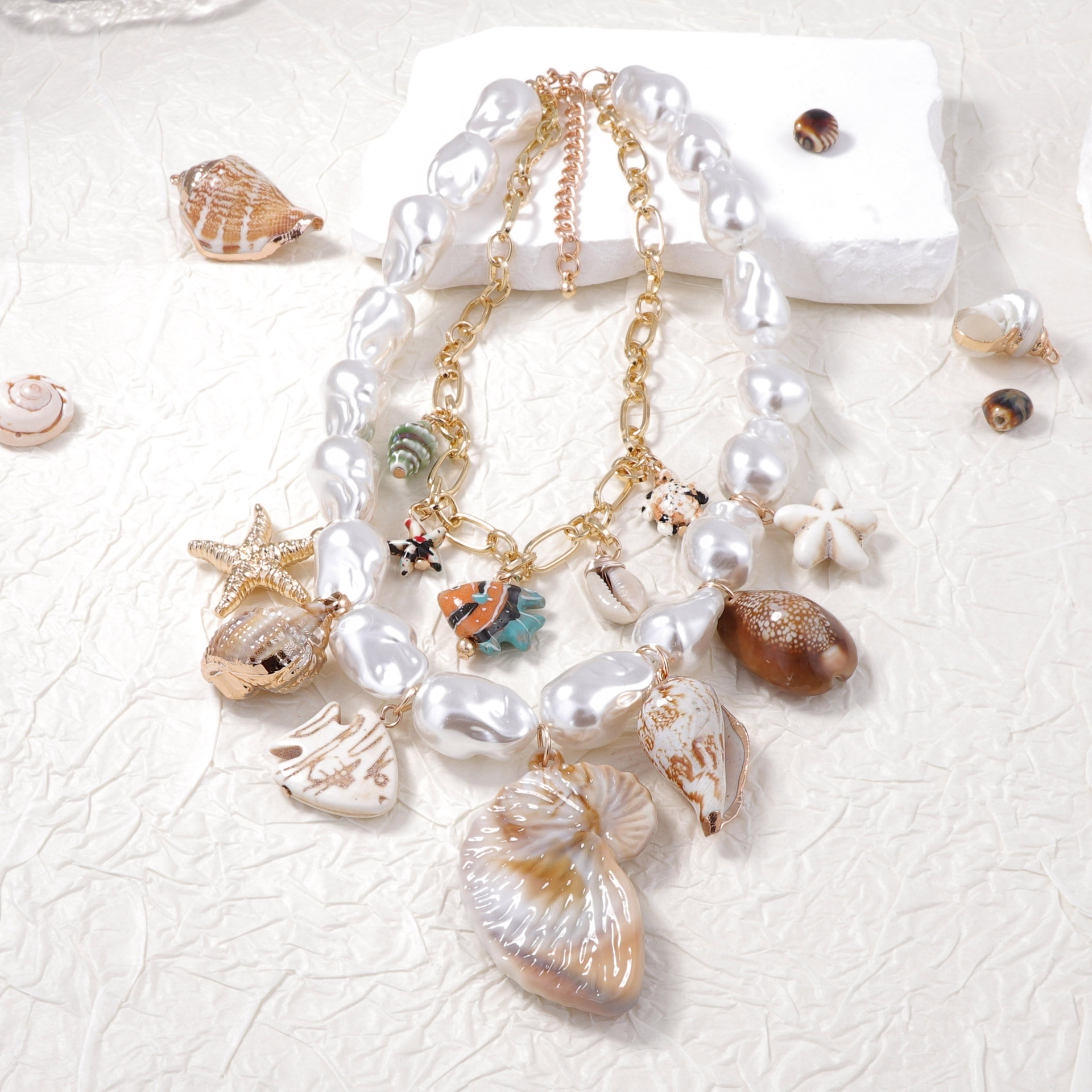 Shell Zinc Alloy Necklace, with Plastic Pearl, gold color plated, multilayer & for woman, golden