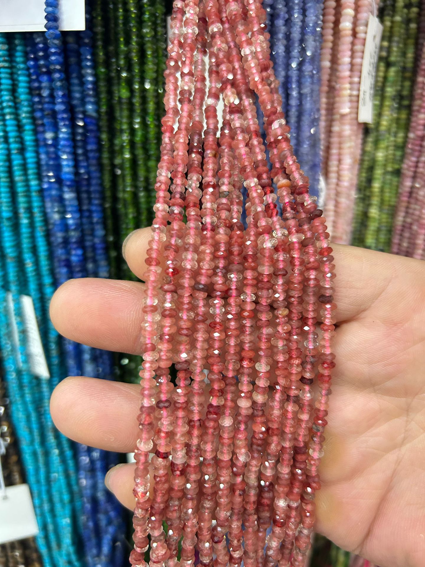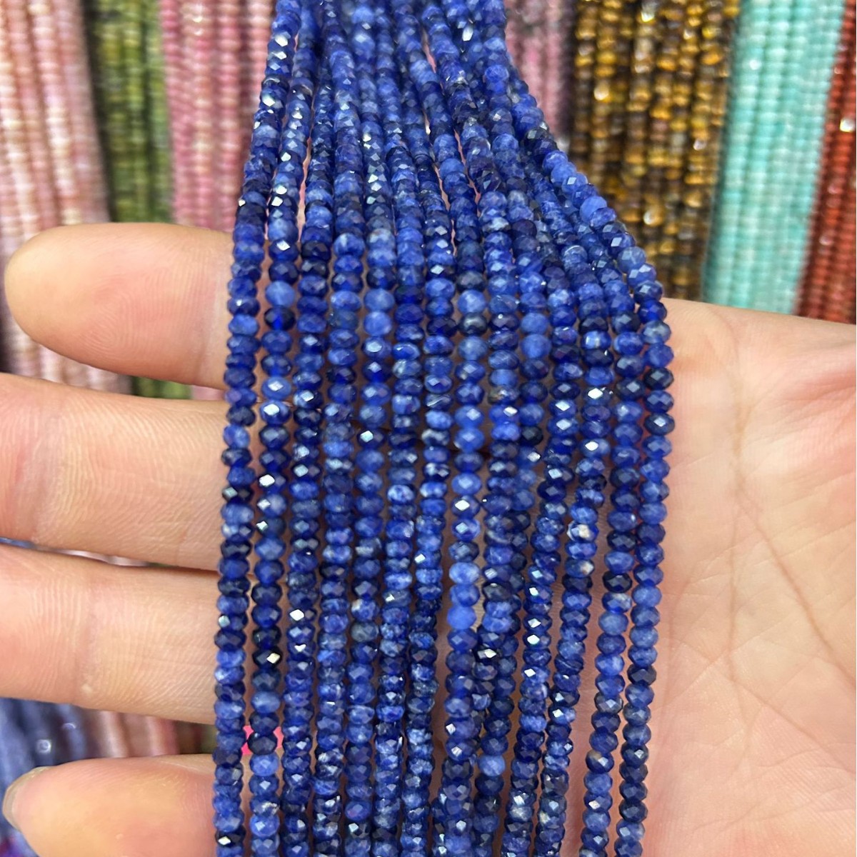 Single Gemstone Beads, polished, DIY & different materials for choice & faceted, 2x4mm, Length:Approx 38 cm, Sold By Strand