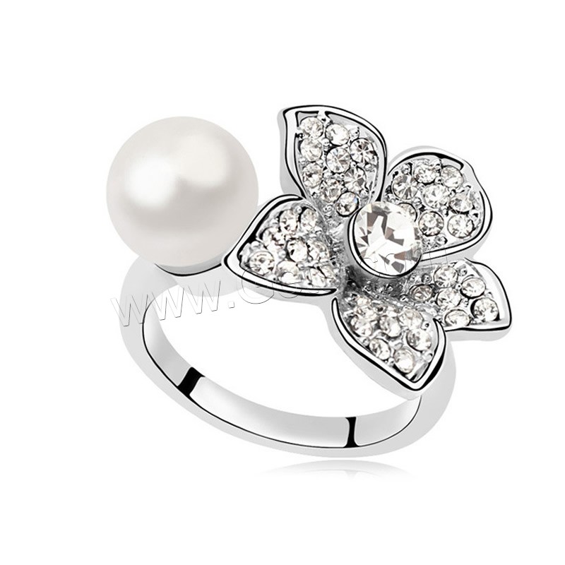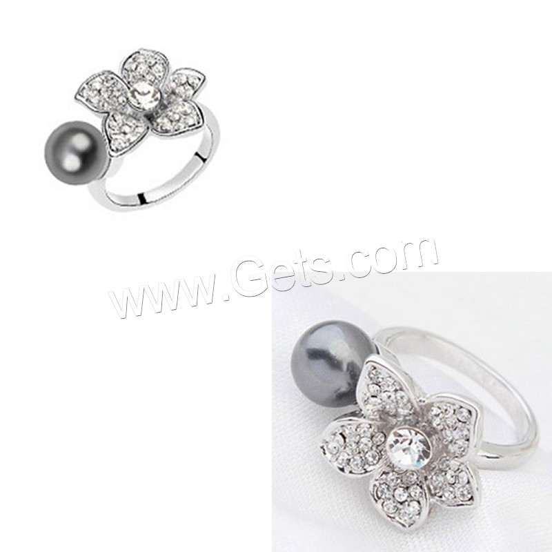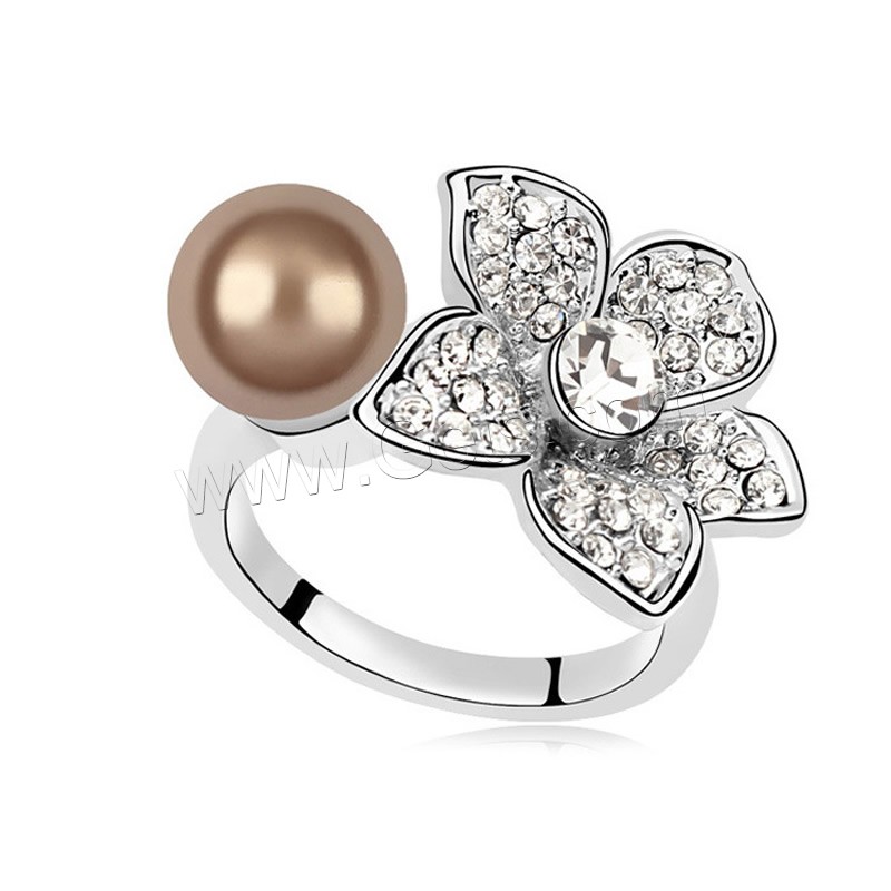 South Sea Shell Finger Ring, Brass, with South Sea Shell, Flower, platinum plated, for woman & with rhinestone, more colors for choice, nickel, lead & cadmium free, 17mm, US Ring Size:6.5, Sold By Pair