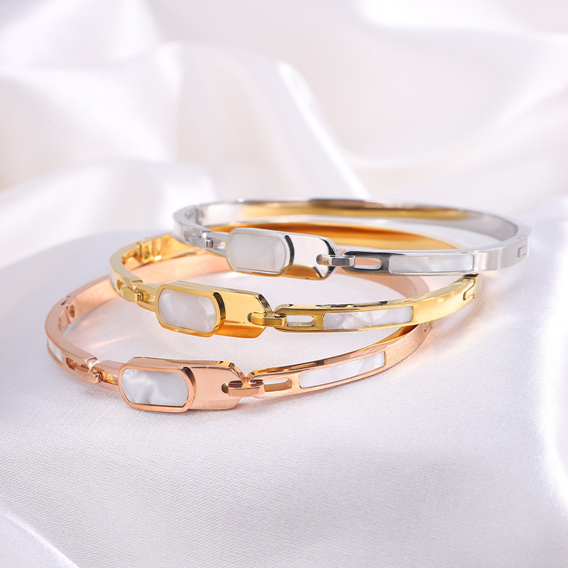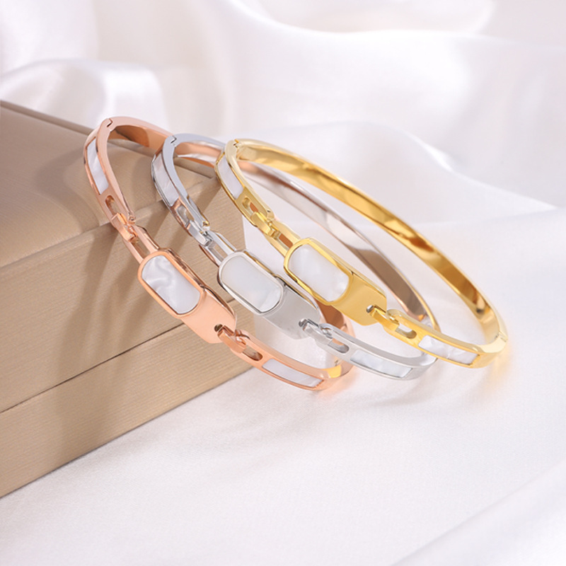 Stainless Steel Bangle, 304 Stainless Steel, with White Shell, plated, fashion jewelry & Unisex & hollow, more colors for choice, Sold By PC