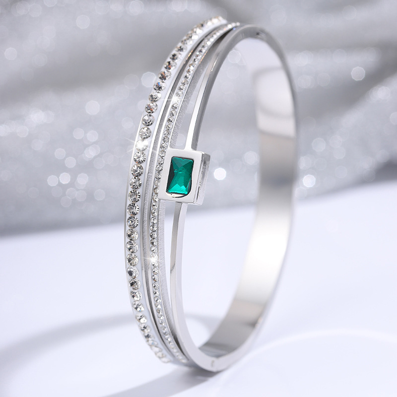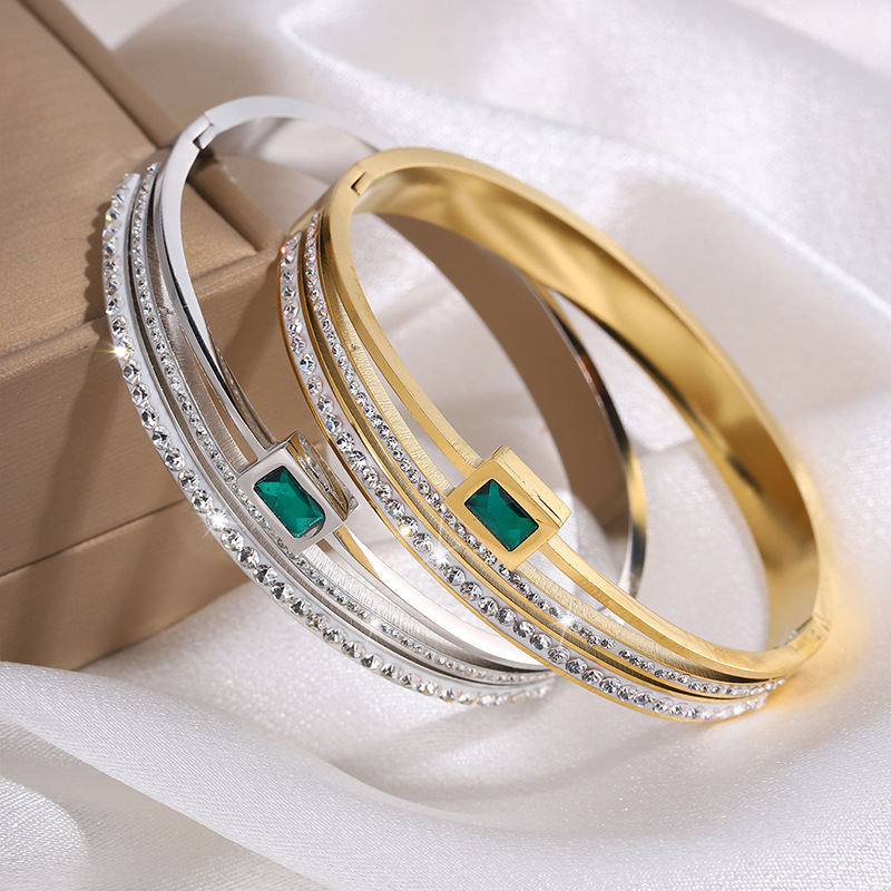 Stainless Steel Bangle, 304 Stainless Steel, plated, three layers & Unisex & with rhinestone, more colors for choice, Sold By PC