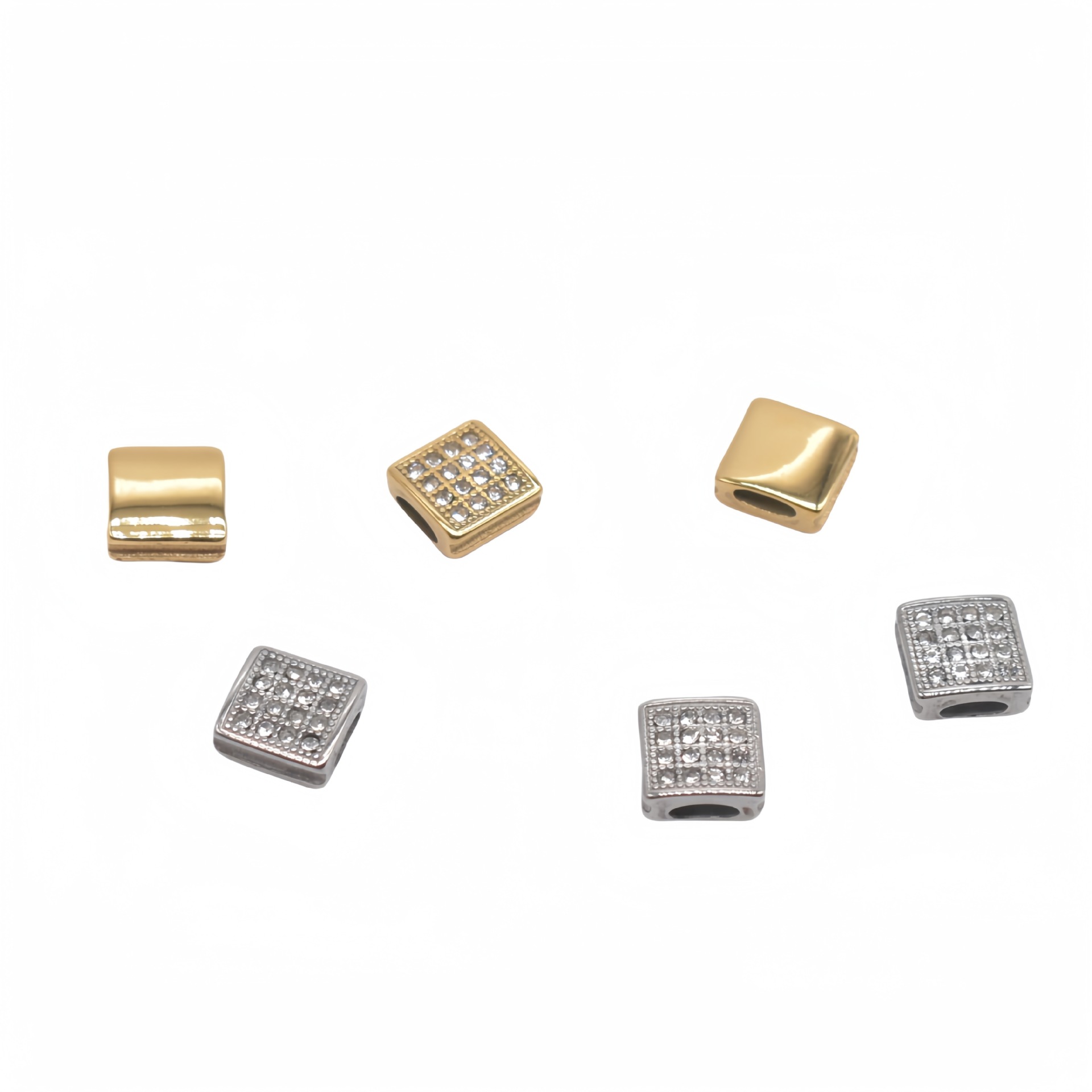 Stainless Steel Beads, 304 Stainless Steel,  Square, plated, DIY & with rhinestone, more colors for choice, Sold By PC