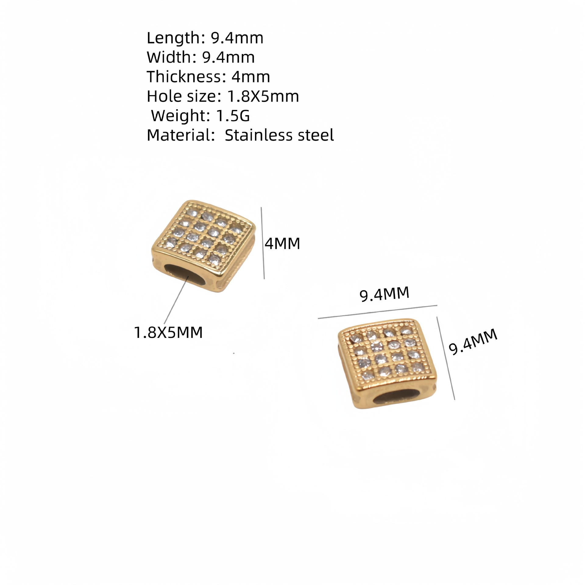 Stainless Steel Beads, 304 Stainless Steel, Square, plated, DIY & with rhinestone, more colors for choice, Sold By PC