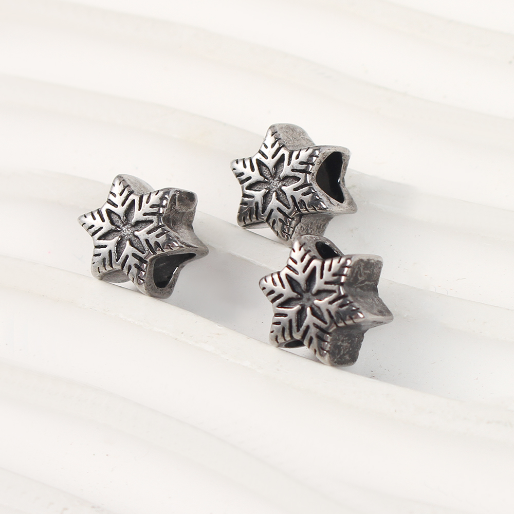 304 Stainless Steel Spacer Bead, Snowflake, Vacuum Ion Plating, DIY Approx
