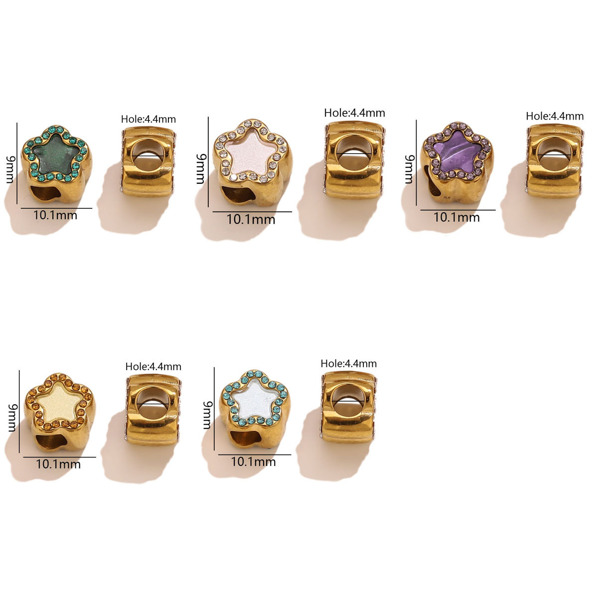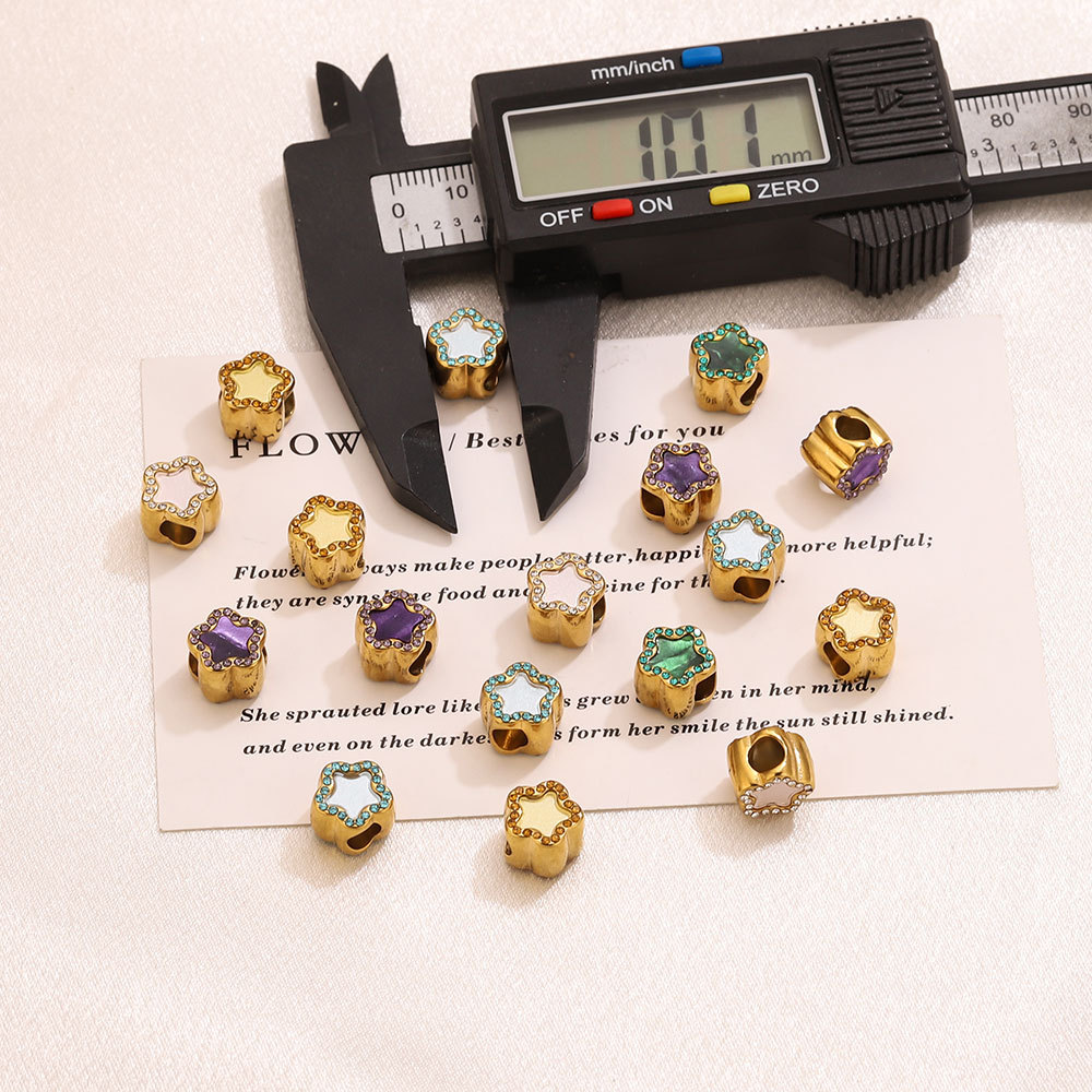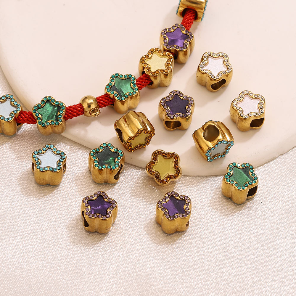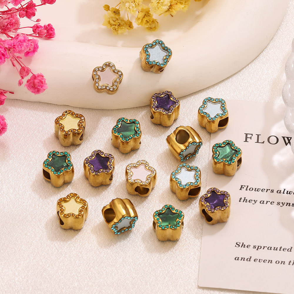 Stainless Steel Beads, 304 Stainless Steel, with Acrylic, Flower, gold color plated, DIY & with rhinestone, more colors for choice, 10.1x9mm, Hole:Approx 4.4mm, Sold By PC