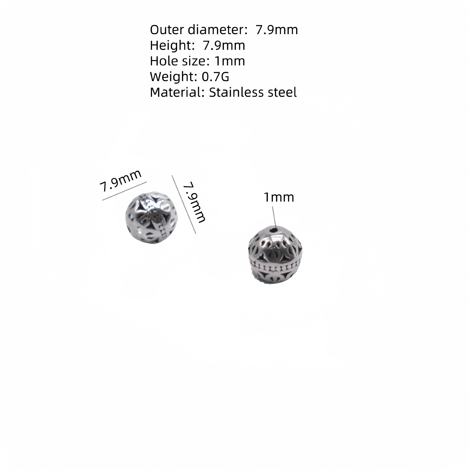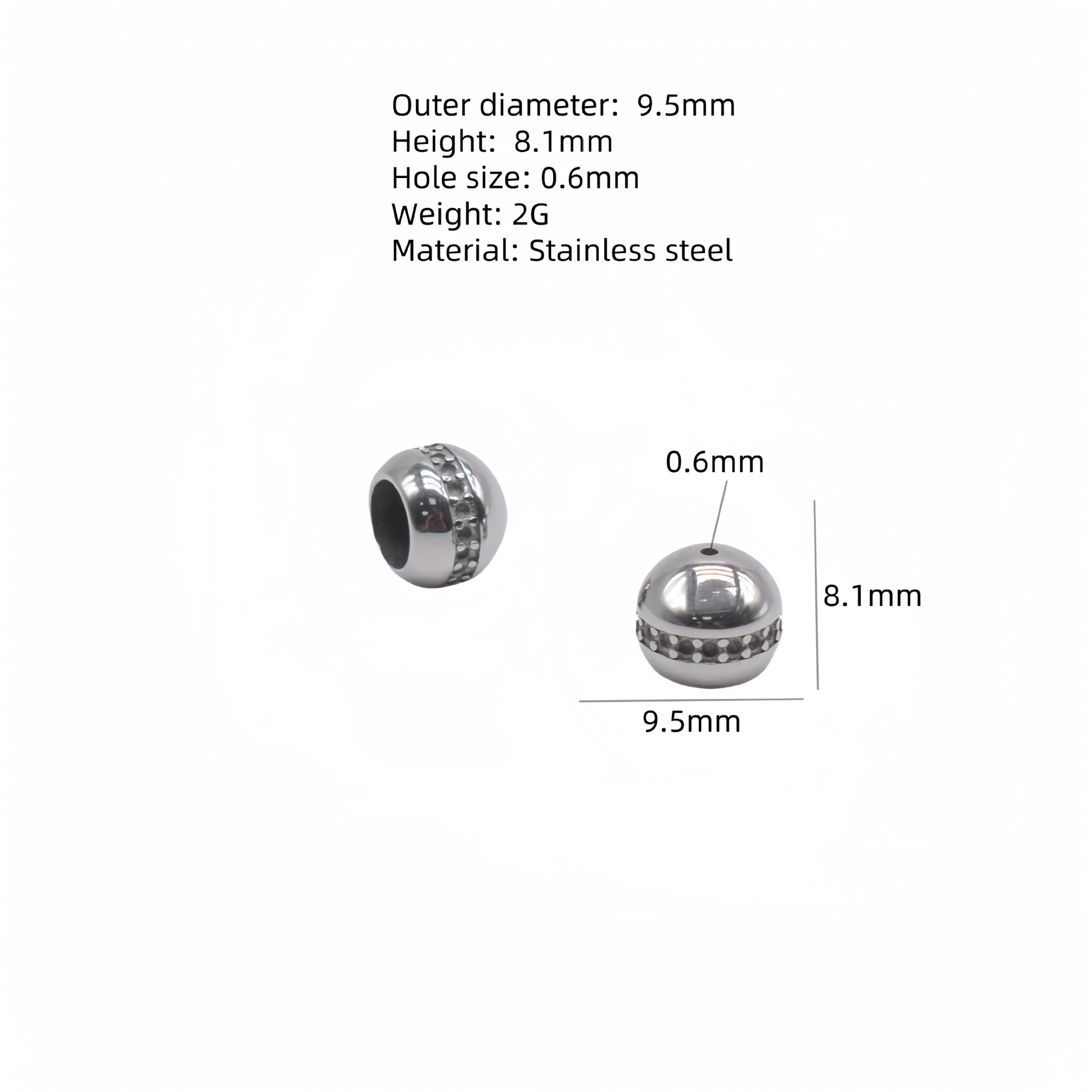 Stainless Steel Beads, 304 Stainless Steel, DIY 9mm