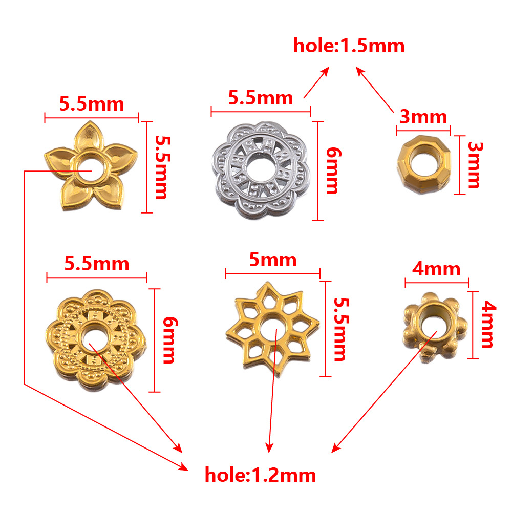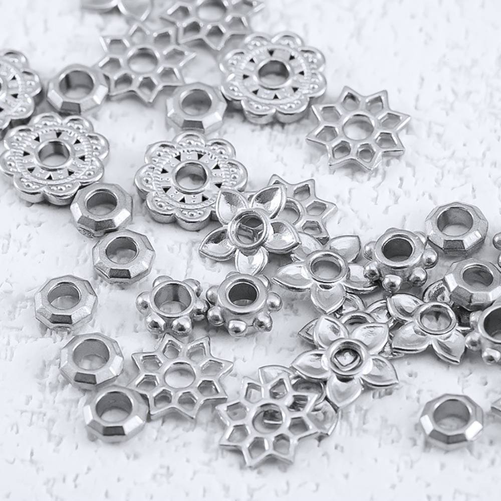 304 Stainless Steel Spacer Bead, Snowflake, Vacuum Ion Plating, DIY Approx