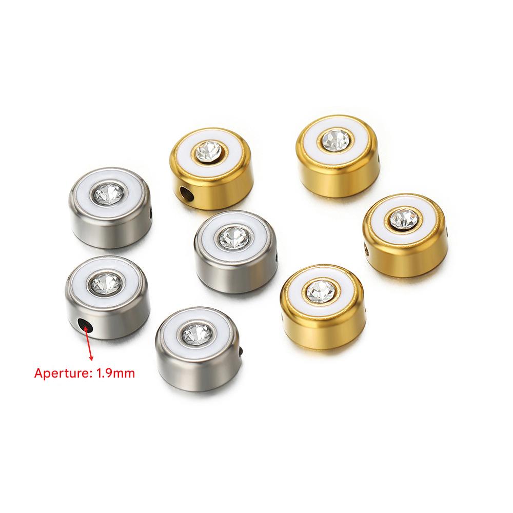 Stainless Steel Beads, 304 Stainless Steel, gold color plated, DIY & micro pave cubic zirconia & enamel, more colors for choice, 5PCs/Bag, Sold By Bag
