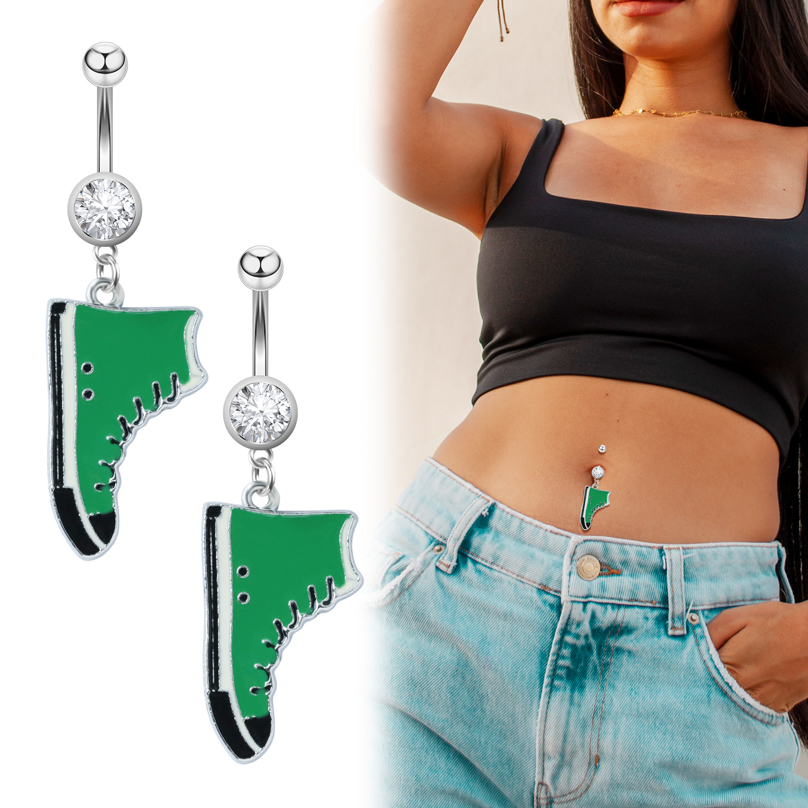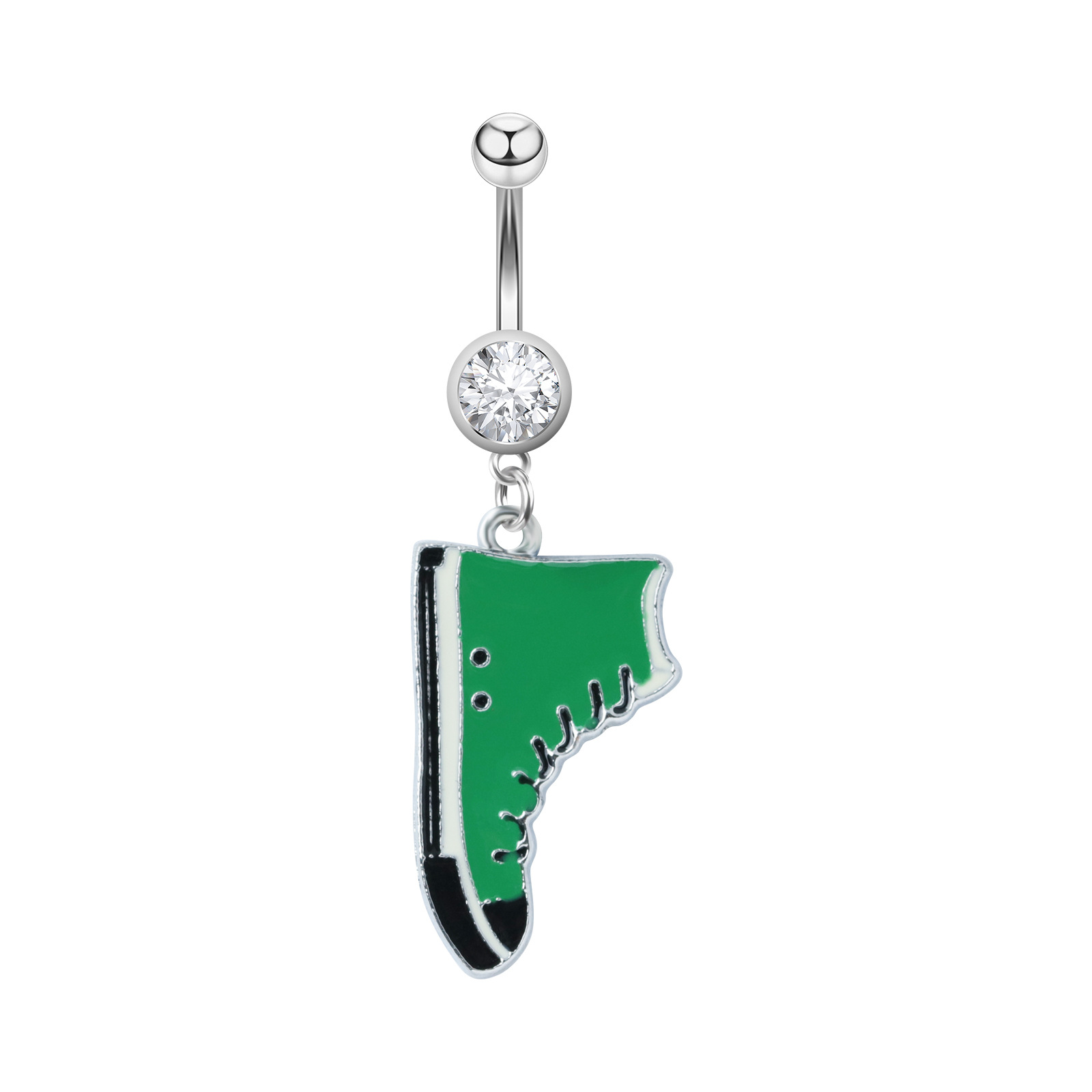 Stainless Steel Belly Ring, 316 Stainless Steel, Shoes, silver color plated, fashion jewelry & enamel & with rhinestone, mixed colors, Sold By PC