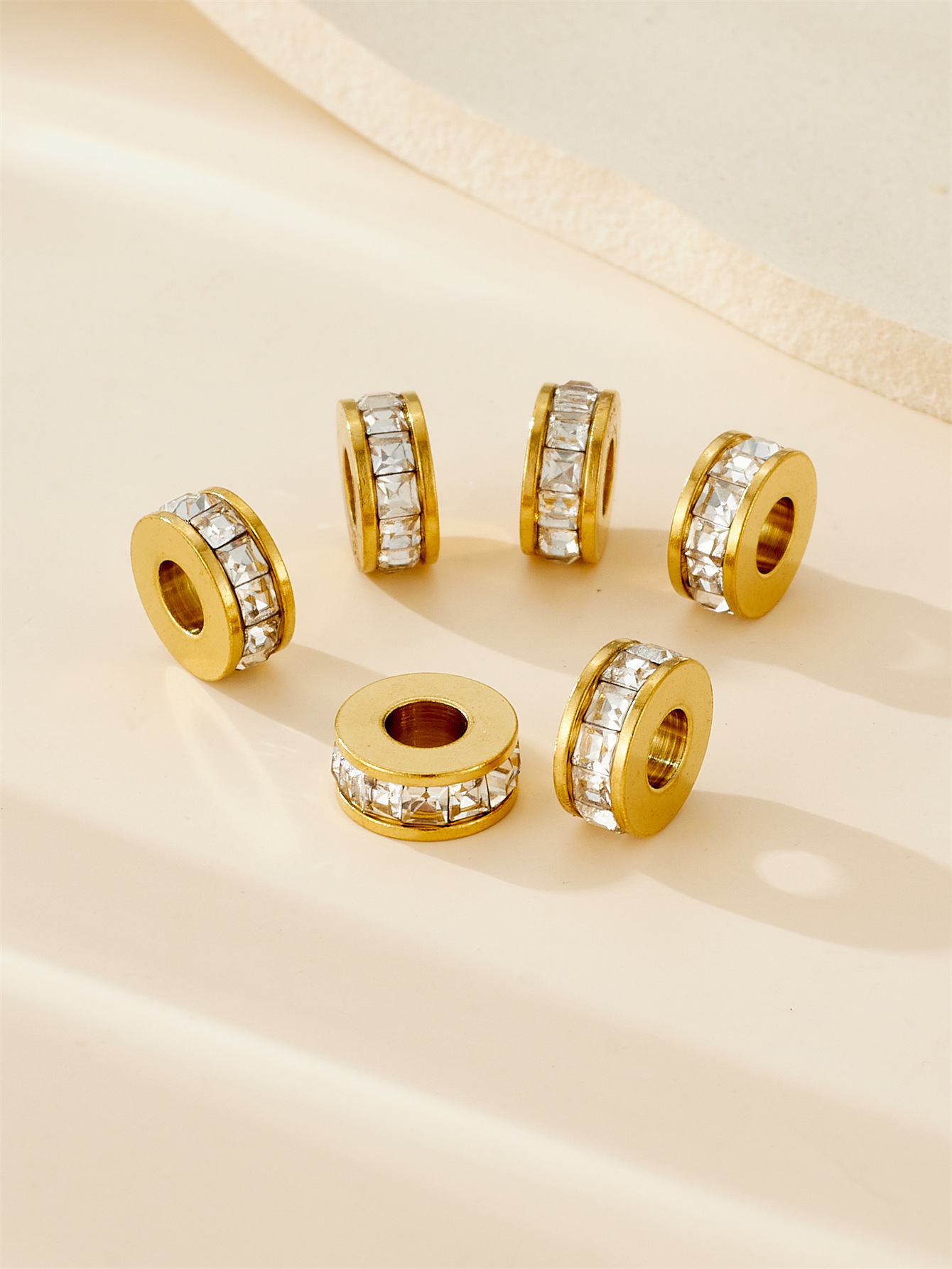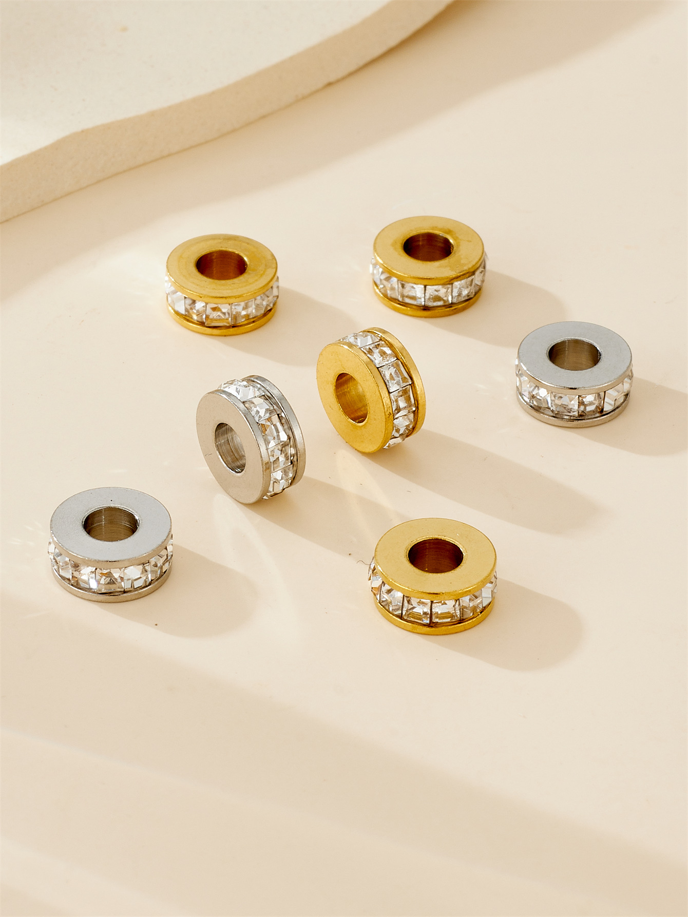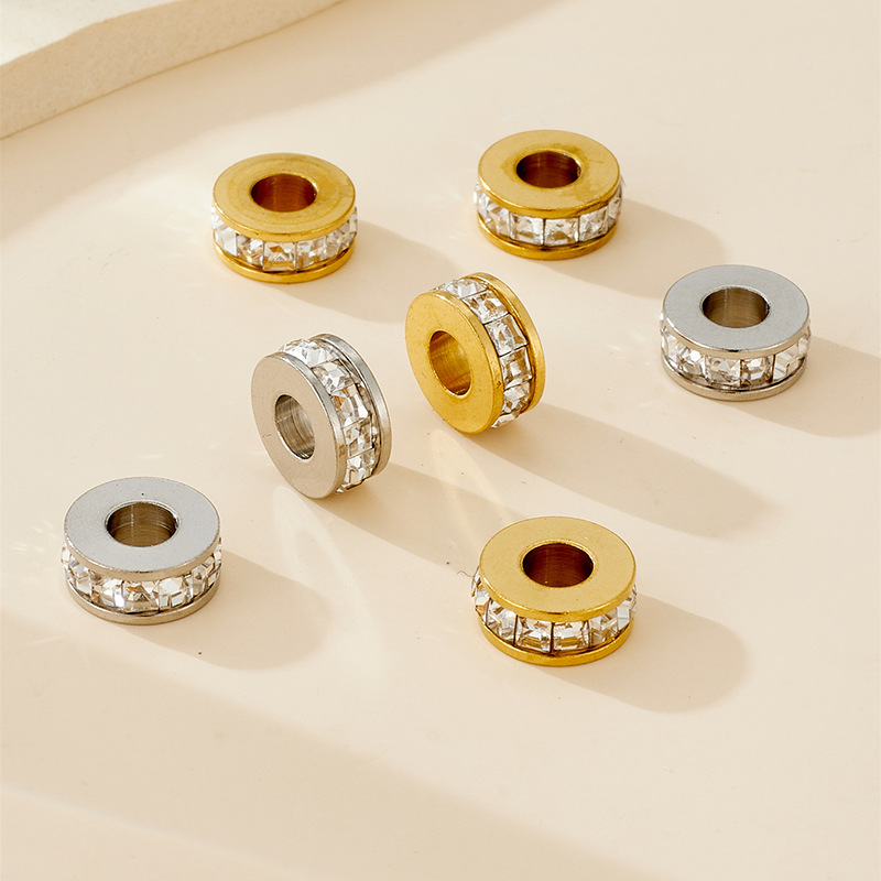 Stainless Steel European Beads, 316 Stainless Steel, Rondelle, without troll & with rhinestone & blacken, original color Approx 5mm