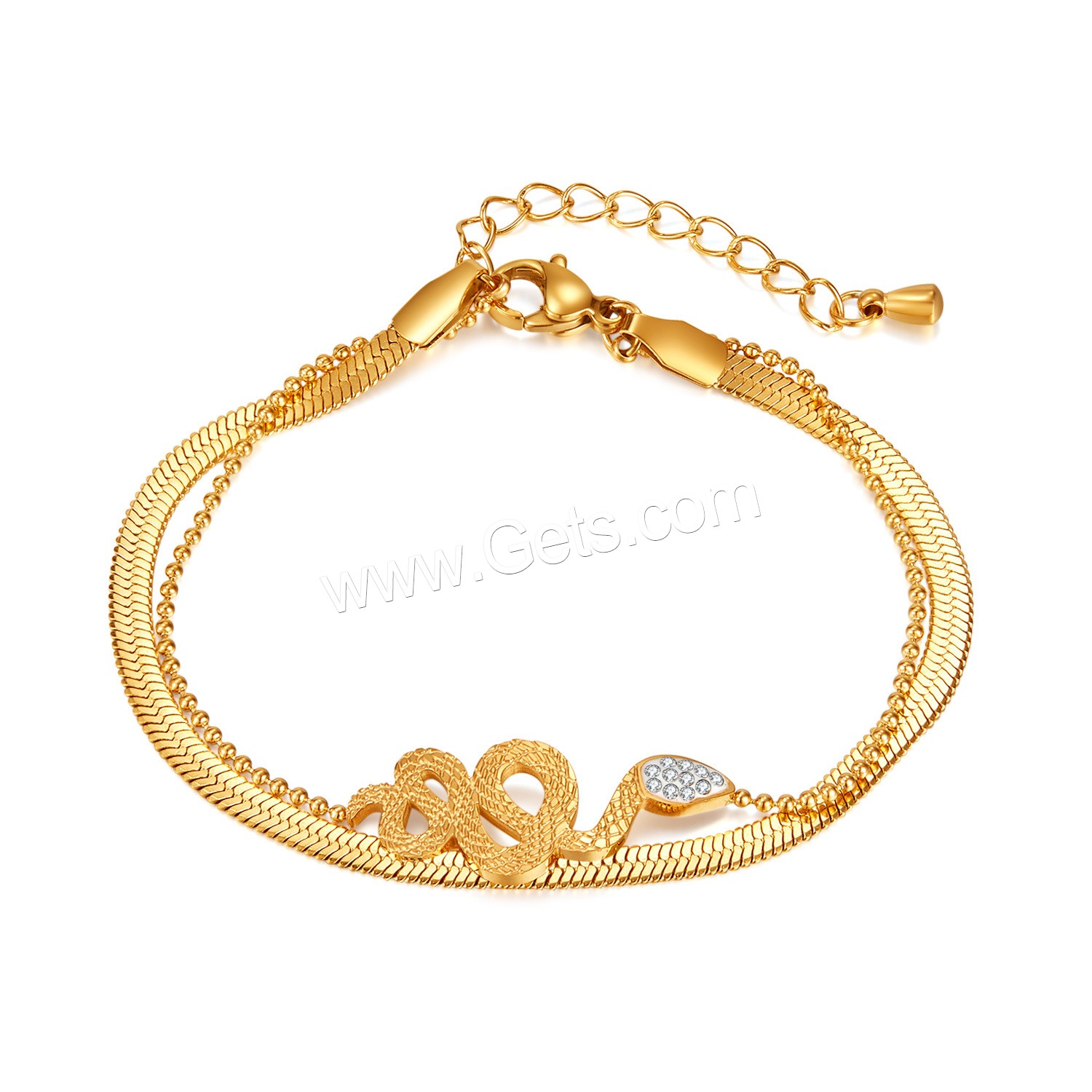 Stainless Steel Chain Bracelets, 304 Stainless Steel, with 4.5cm extender chain, Vacuum Ion Plating, fashion jewelry & micro pave cubic zirconia & for woman, golden, Length:16 cm, Sold By PC