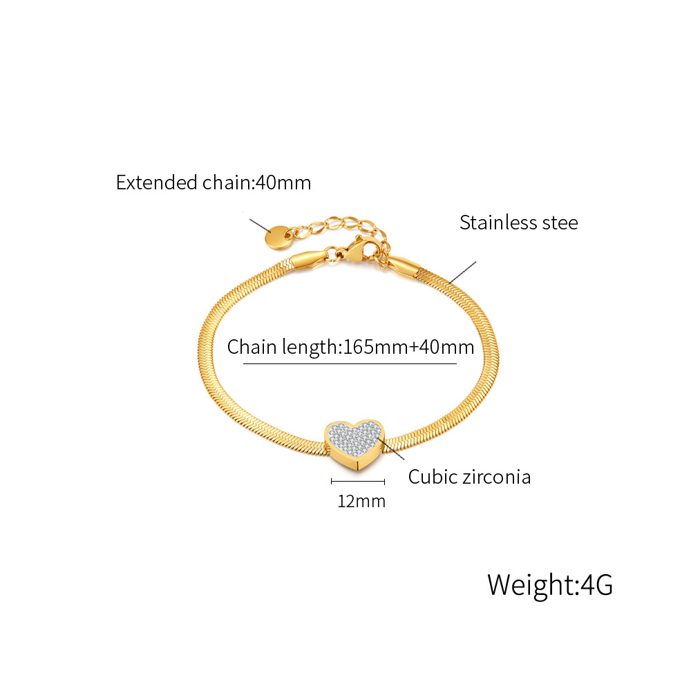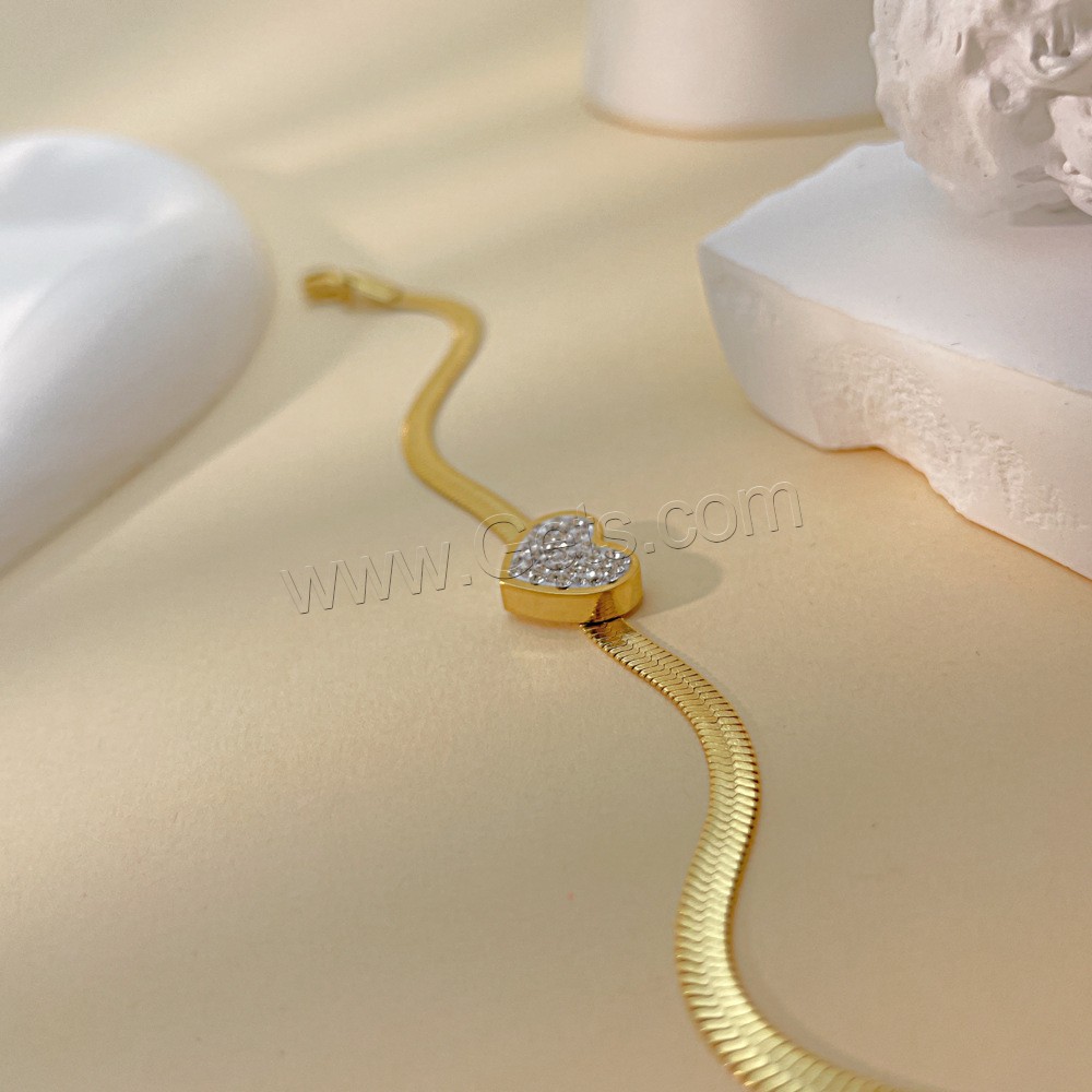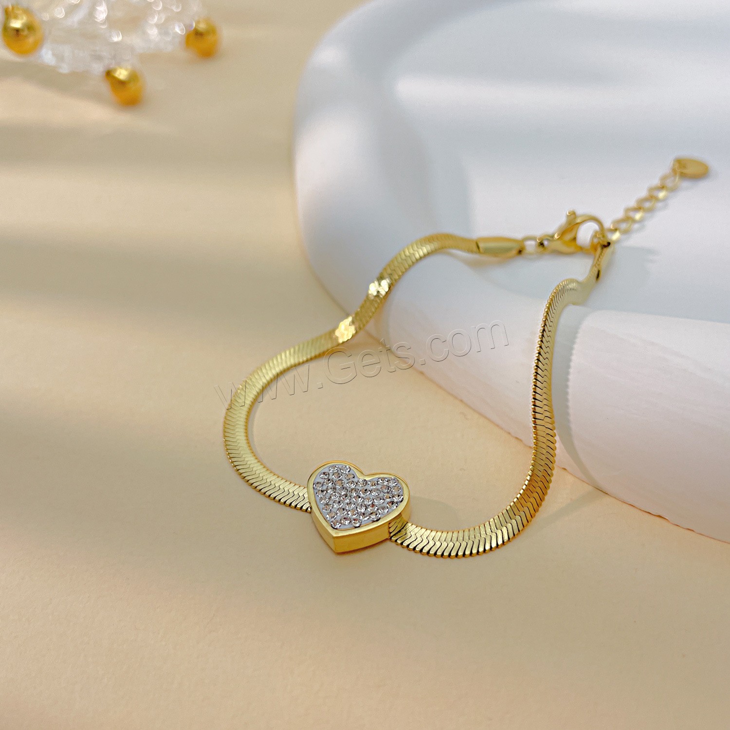Stainless Steel Chain Bracelets, 304 Stainless Steel, with 4cm extender chain, Vacuum Ion Plating, fashion jewelry & micro pave cubic zirconia & for woman, golden, 12mm, Length:16.5 cm, Sold By PC