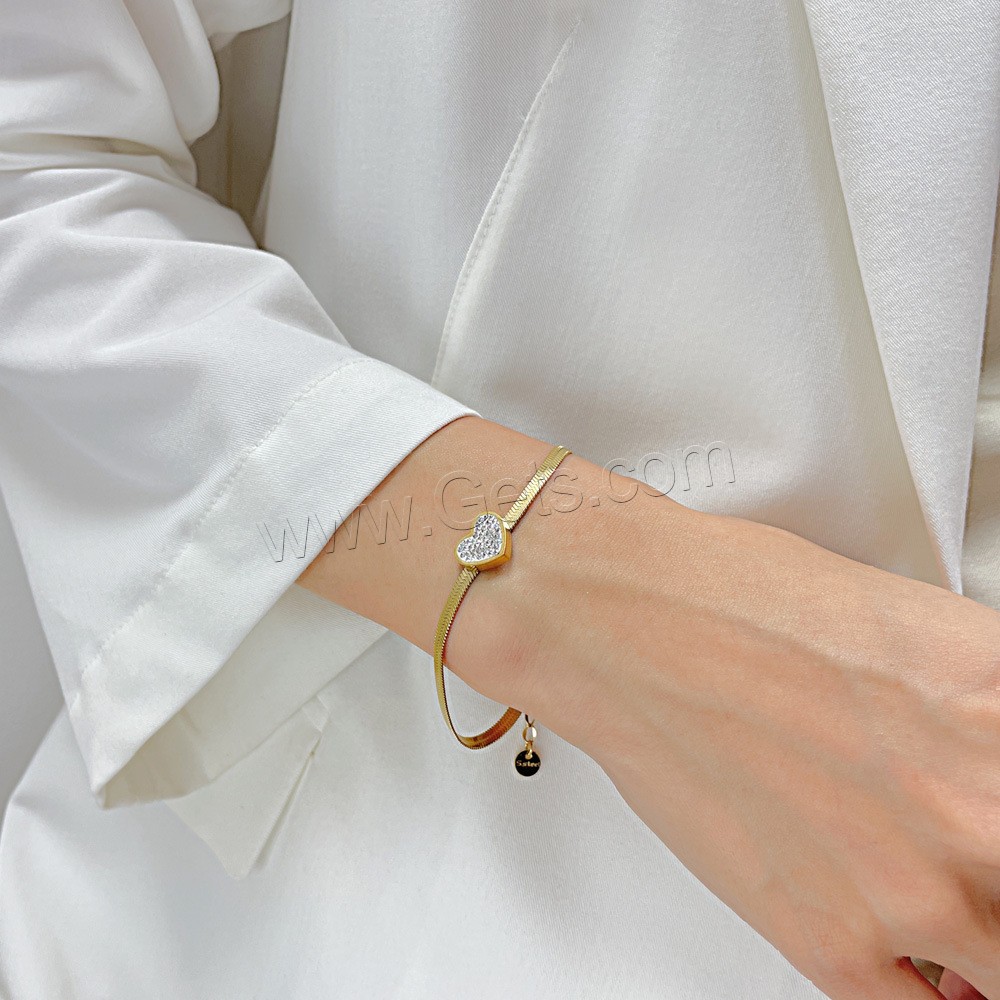 Stainless Steel Chain Bracelets, with 1Inch extender chain, plated, oval chain & with rhinestone 1.5mm Approx 7.5 Inch