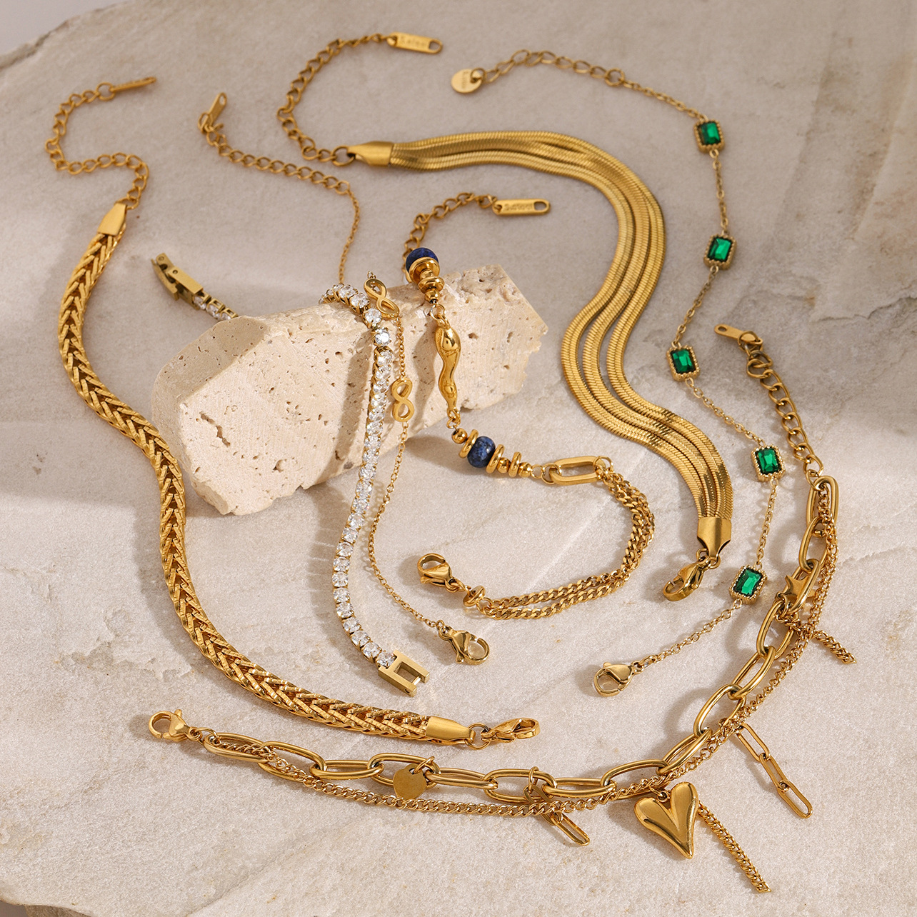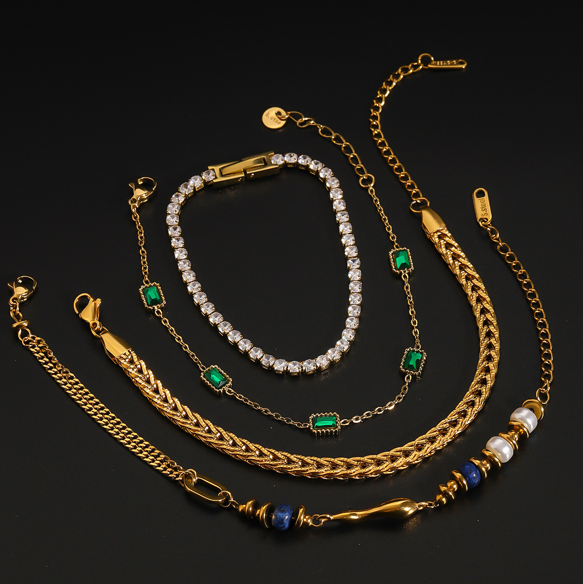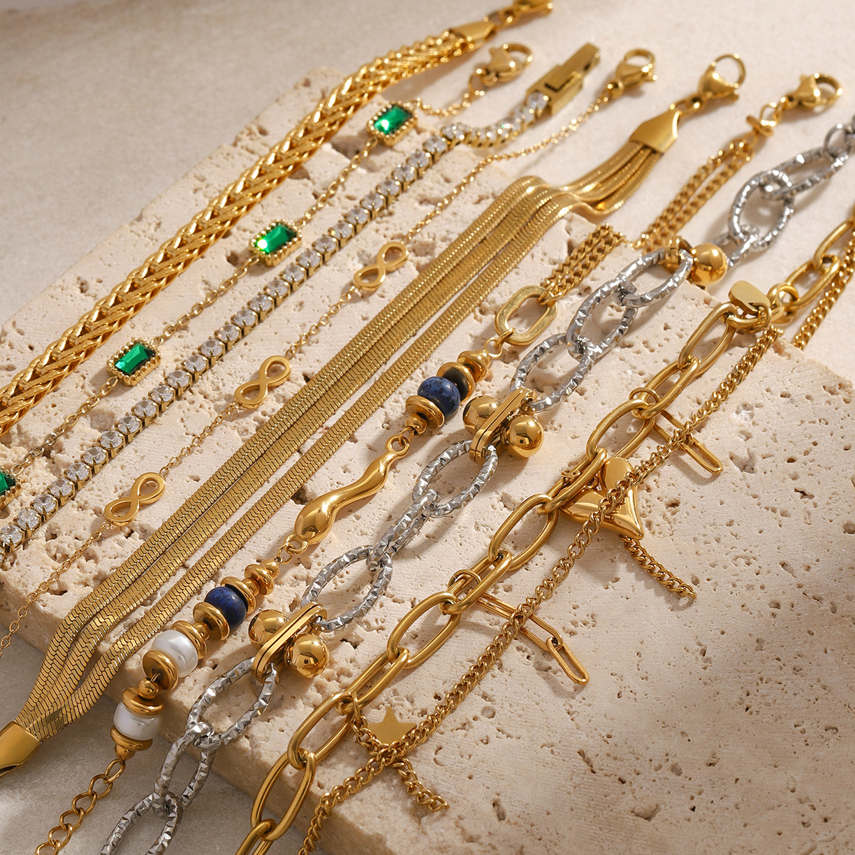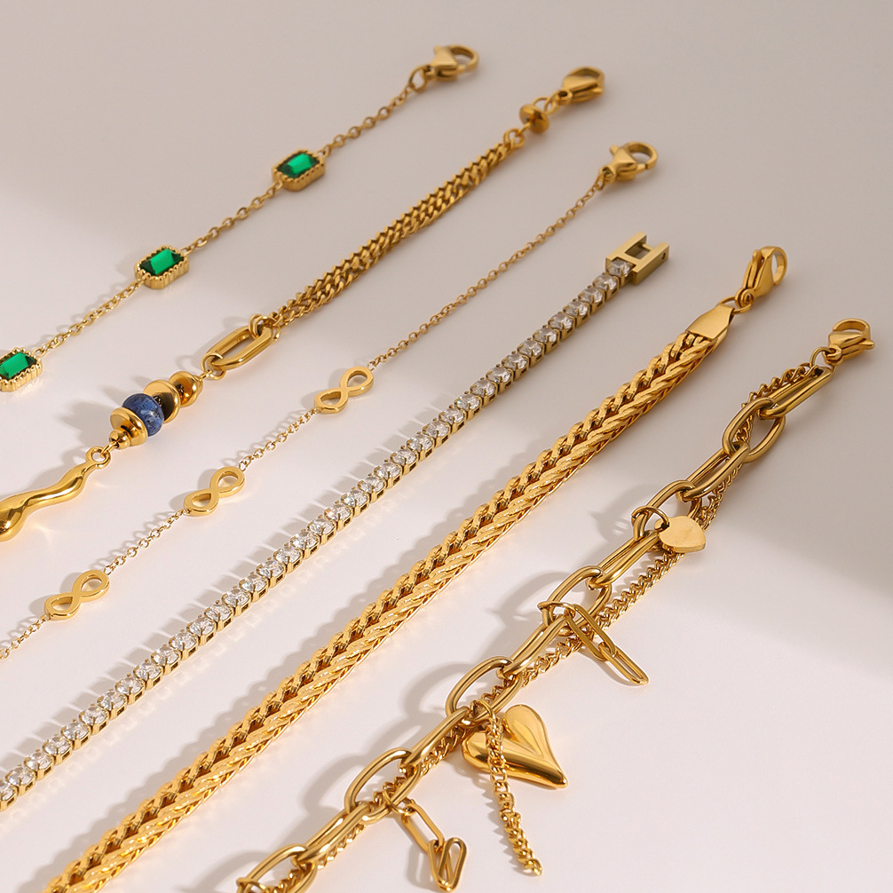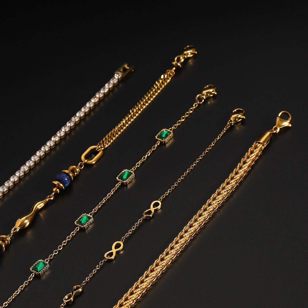 Stainless Steel Chain Bracelets, 304 Stainless Steel, with Gemstone, Vacuum Ion Plating, fashion jewelry & polished & for woman cm