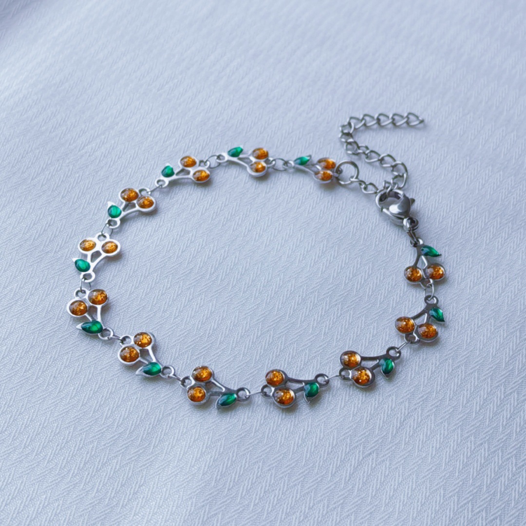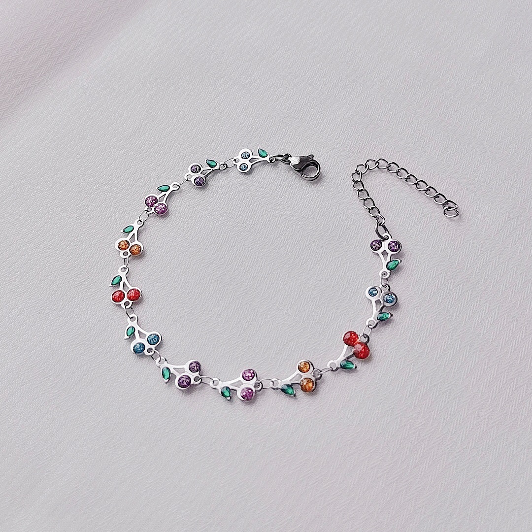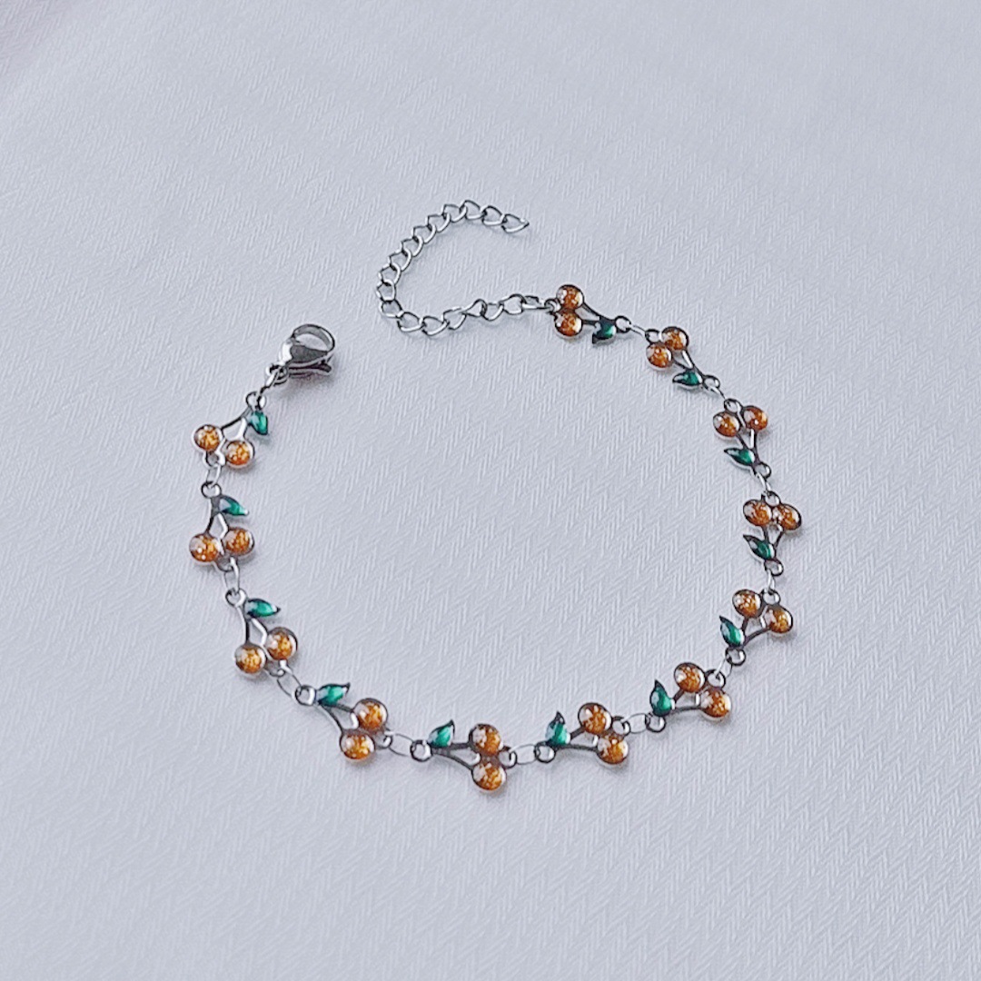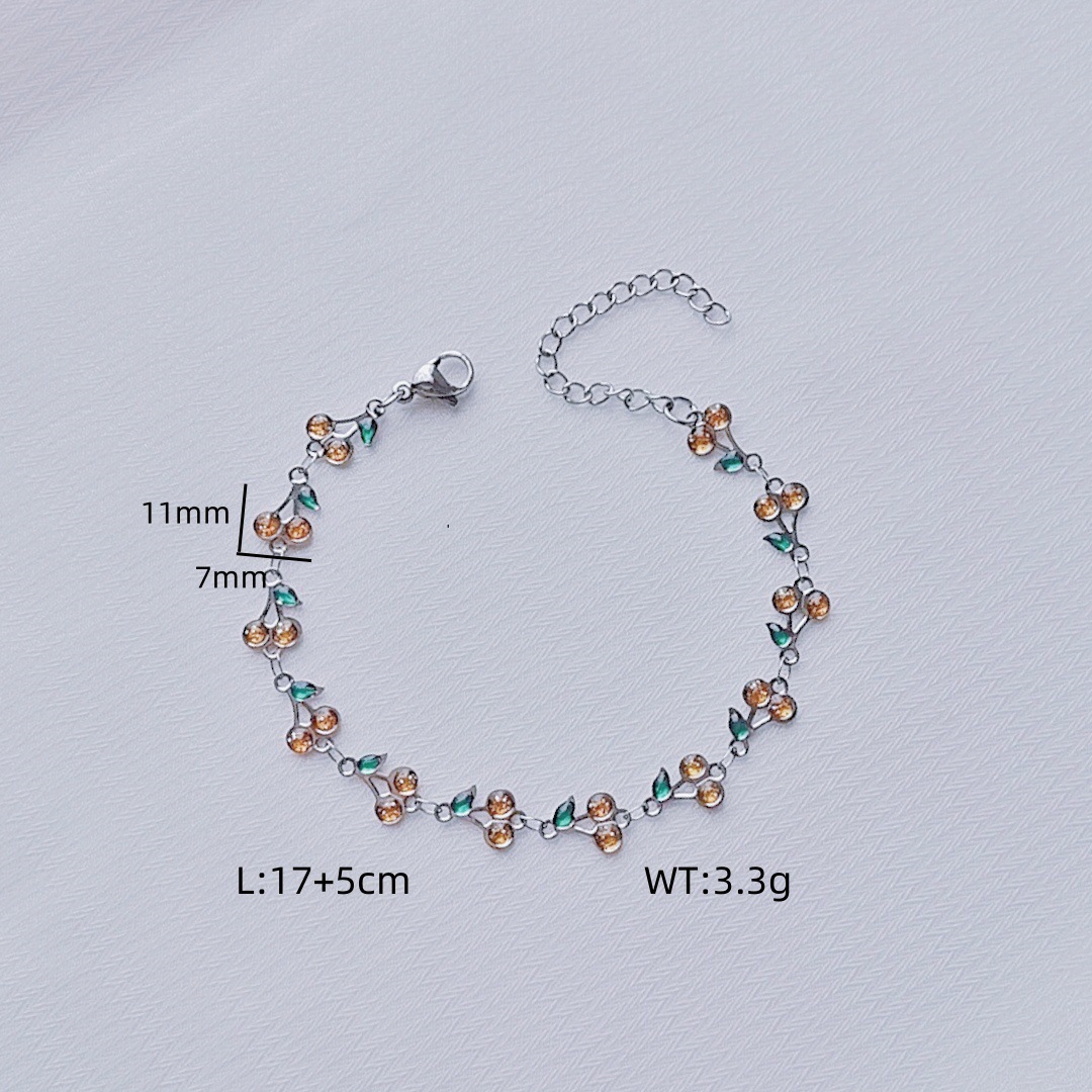 Stainless Steel Charm Bracelet, 304 Stainless Steel, Cherry, silver color plated, for woman & enamel, more colors for choice, Length:17 cm, Sold By PC