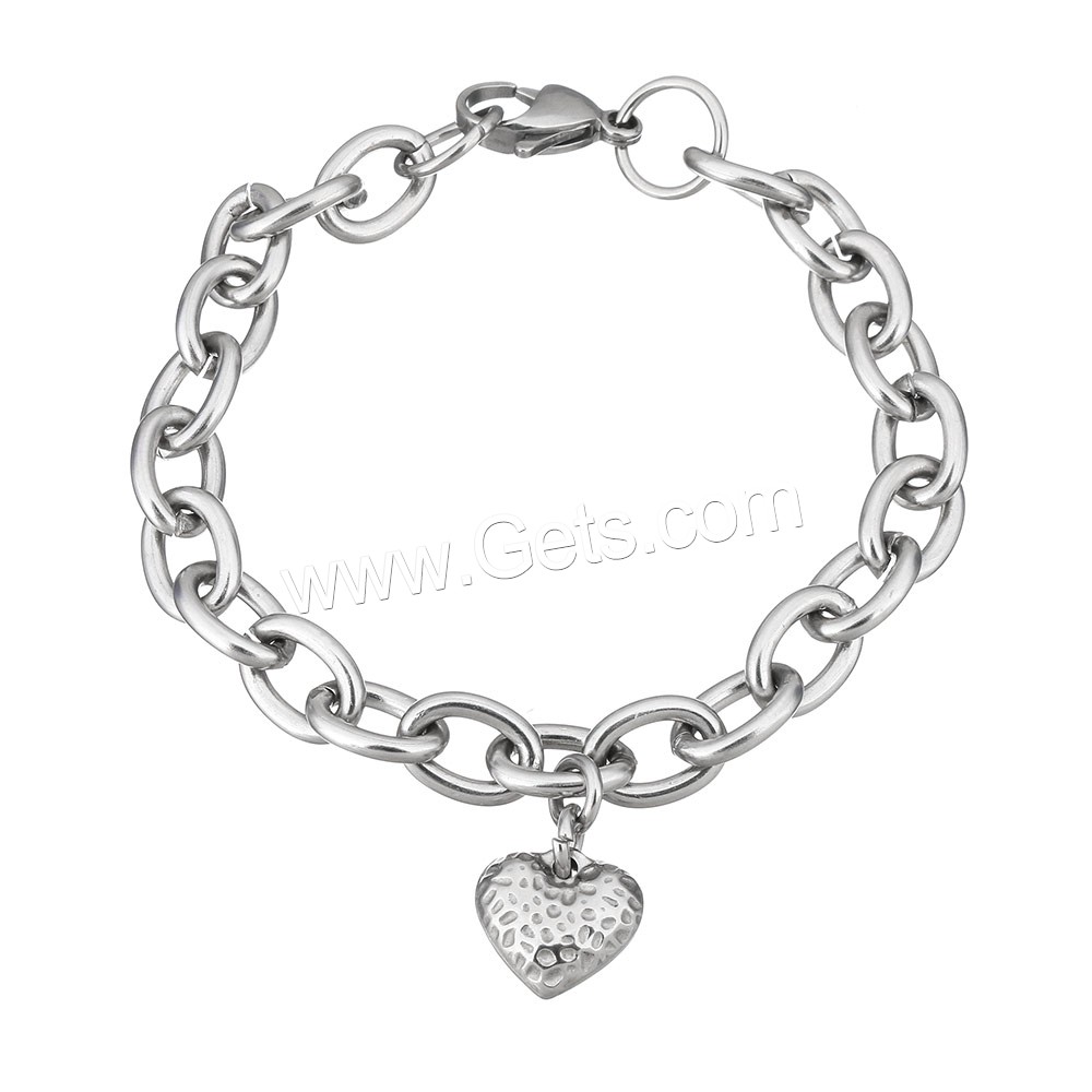 Stainless Steel Charm Bracelet, Heart, oval chain, original color  4mm Approx 8 Inch