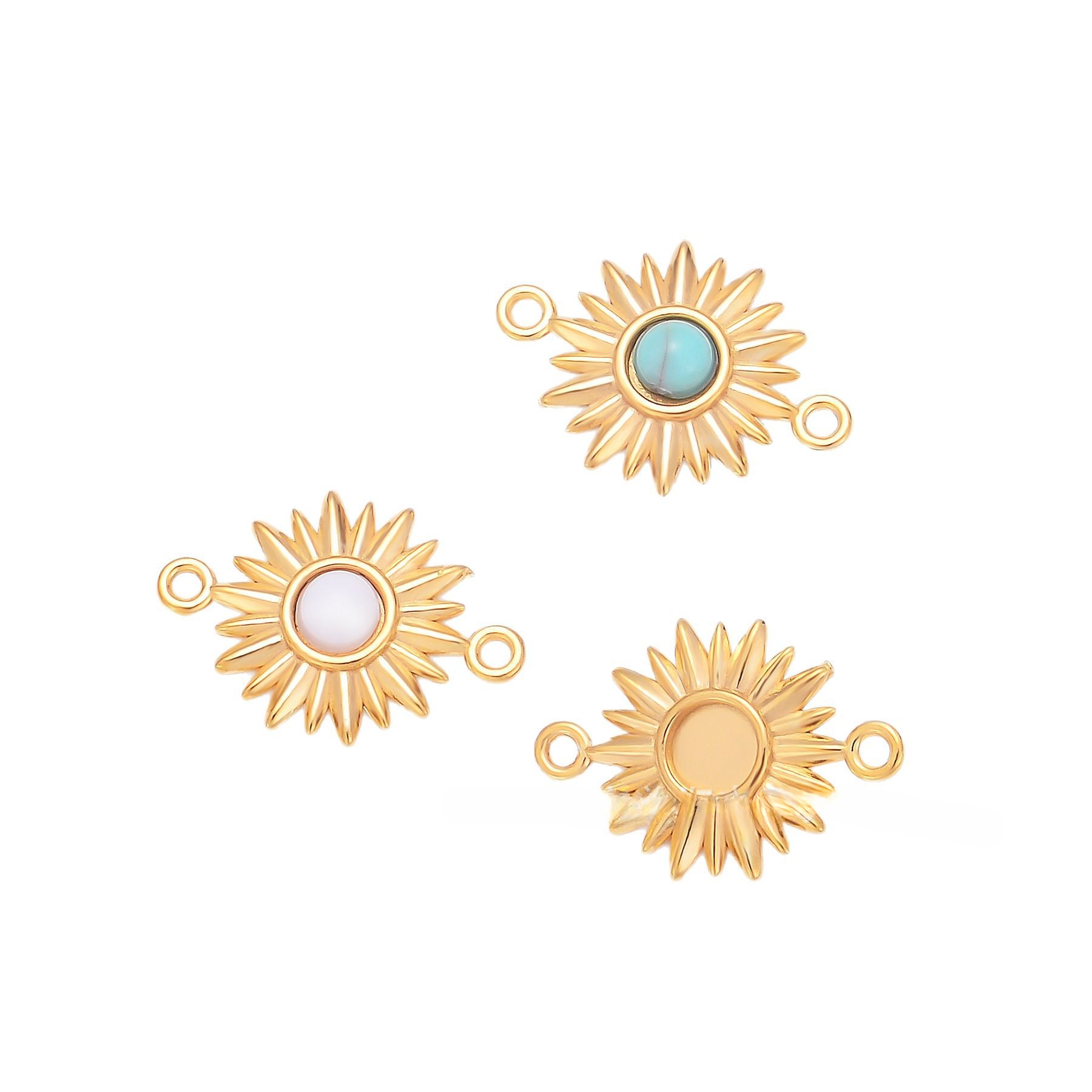 Stainless Steel Charm Connector, 304 Stainless Steel, with Natural Stone, gold color plated, DIY & double-hole, more colors for choice, 5PCs/Bag, Sold By Bag