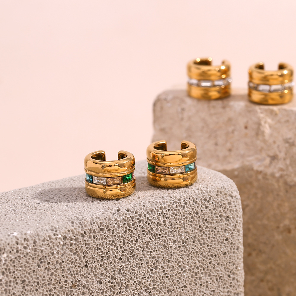 Stainless Steel Clip Earrings, 304 Stainless Steel, 18K gold plated, fashion jewelry & for woman & with rhinestone, more colors for choice, Sold By Pair
