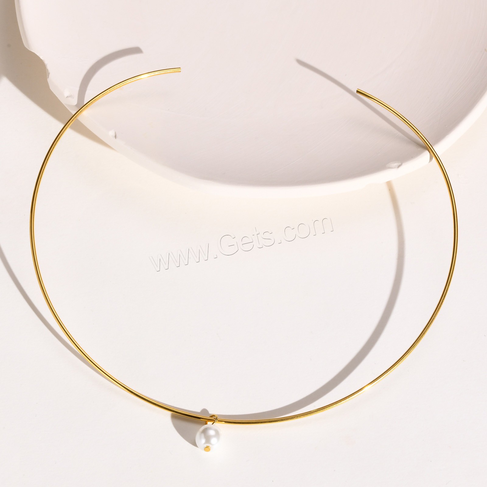 Stainless Steel Collar Necklace, 304 Stainless Steel, with Plastic Pearl, fashion jewelry & for woman, golden, 1.5mm,8mm, Inner Diameter:Approx 120mm, Sold By PC