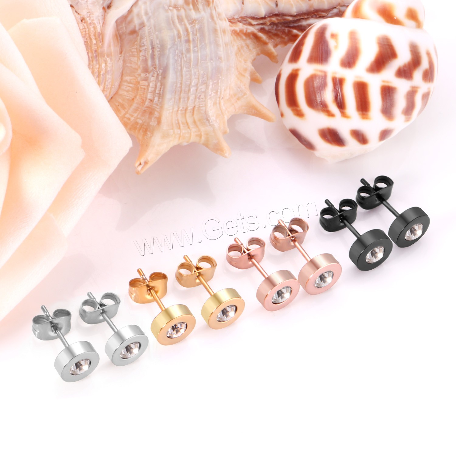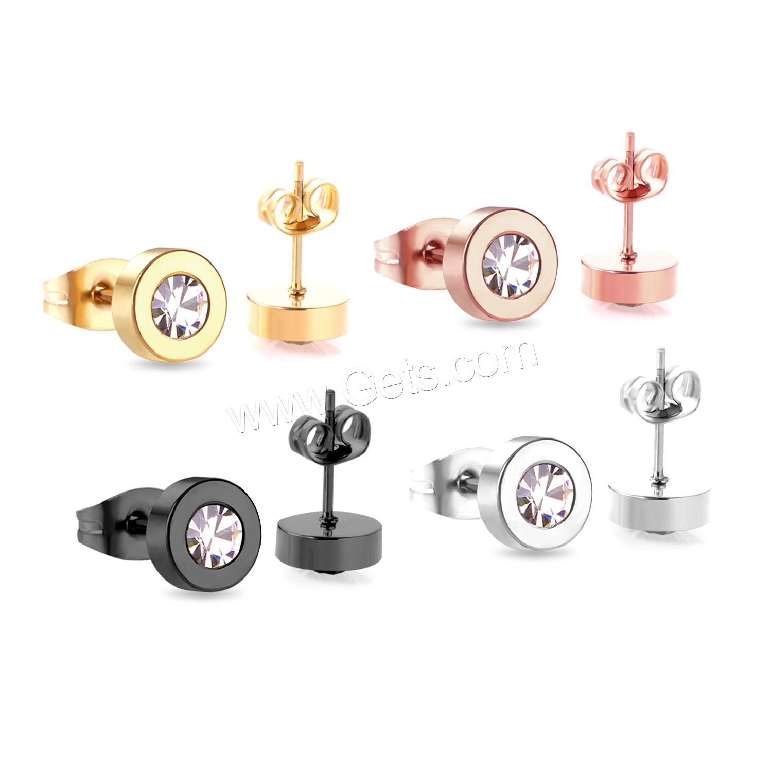 Stainless Steel Cubic Zirconia Stud Earring, plated, with cubic zirconia & faceted