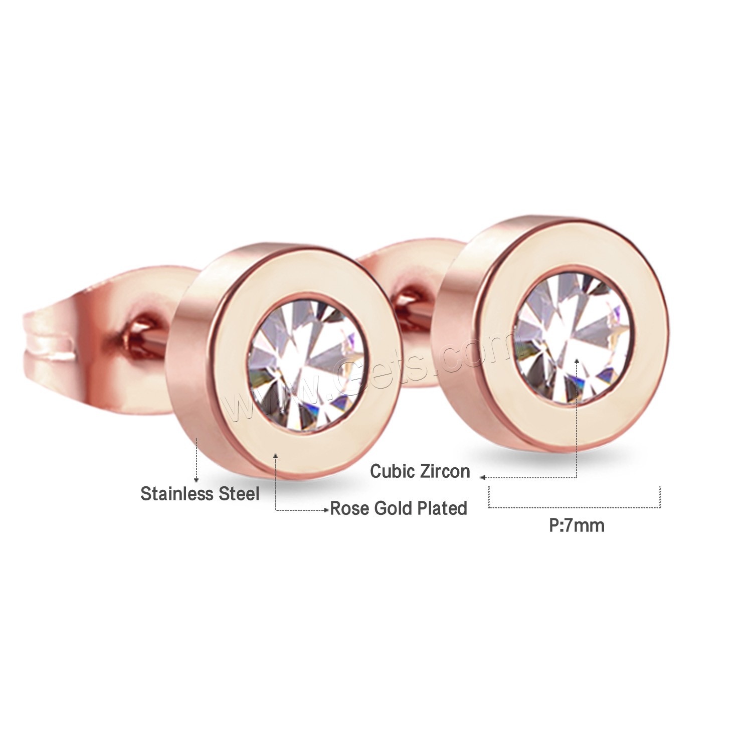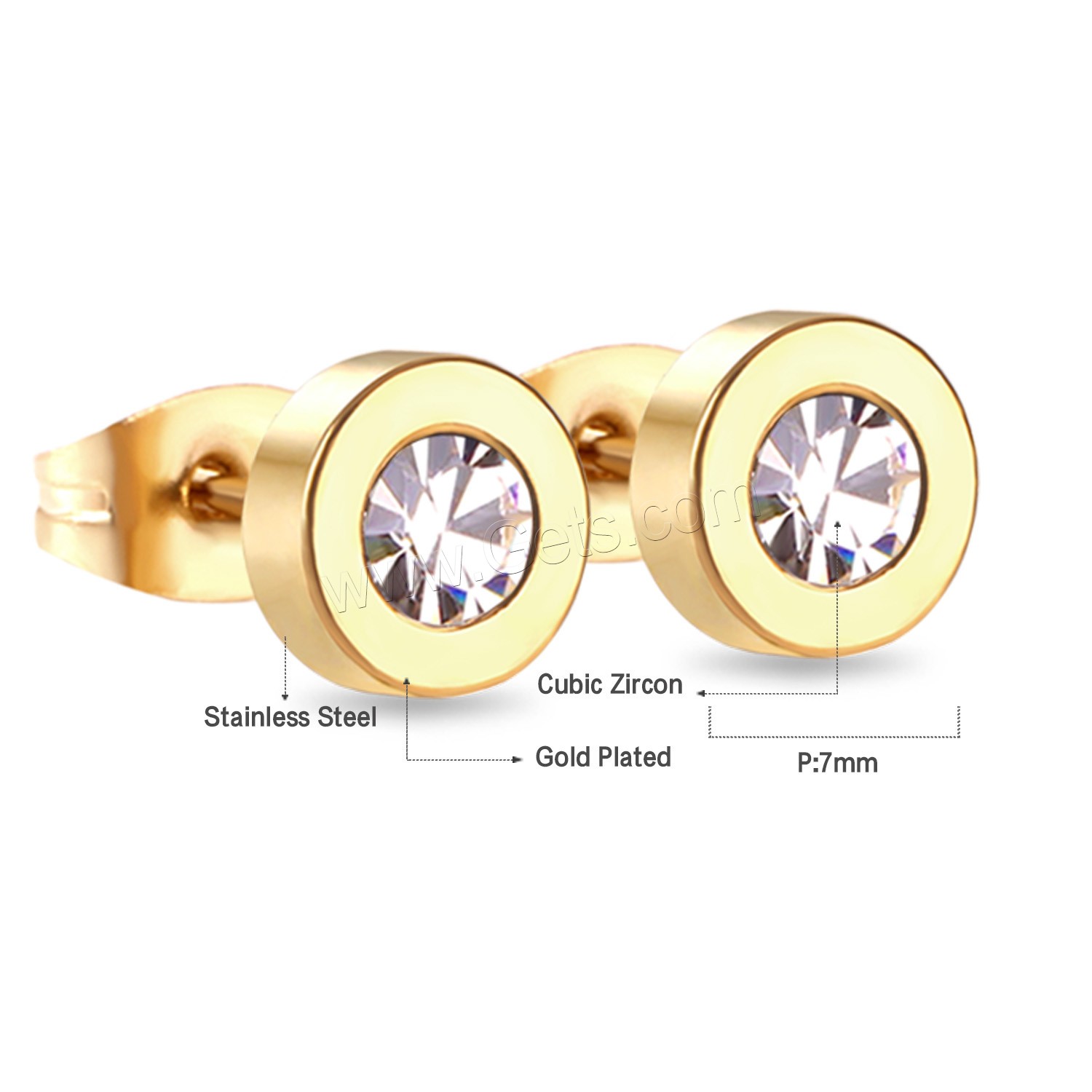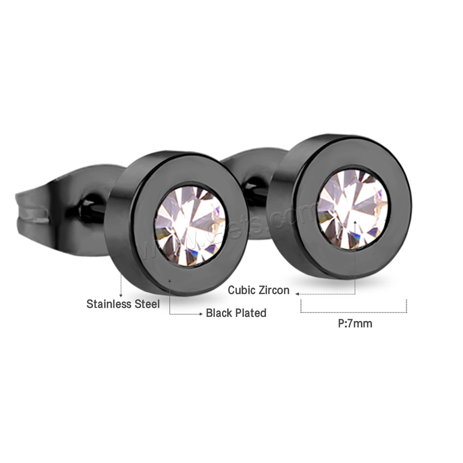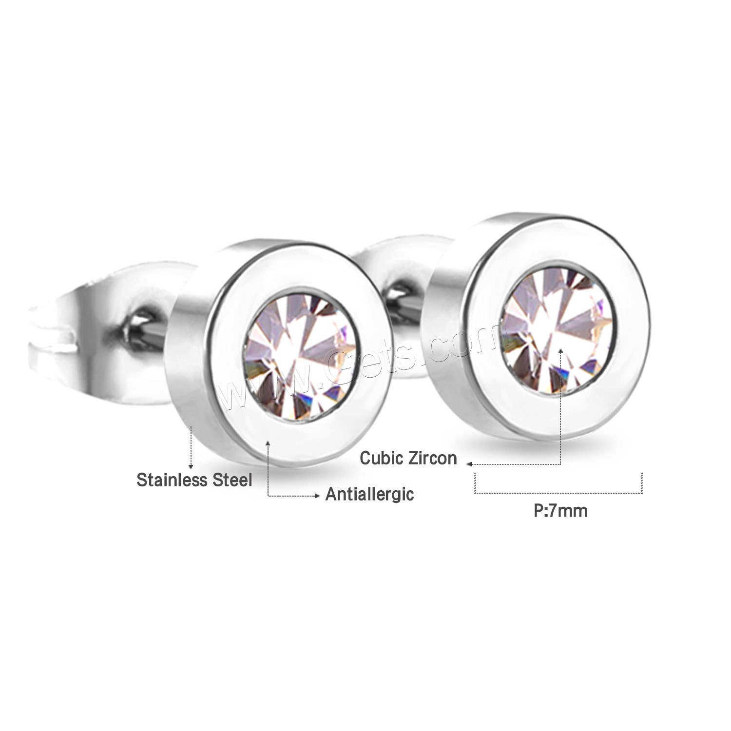 Stainless Steel Cubic Zirconia Stud Earring, 316L Stainless Steel, plated, with cubic zirconia 7mm, Approx