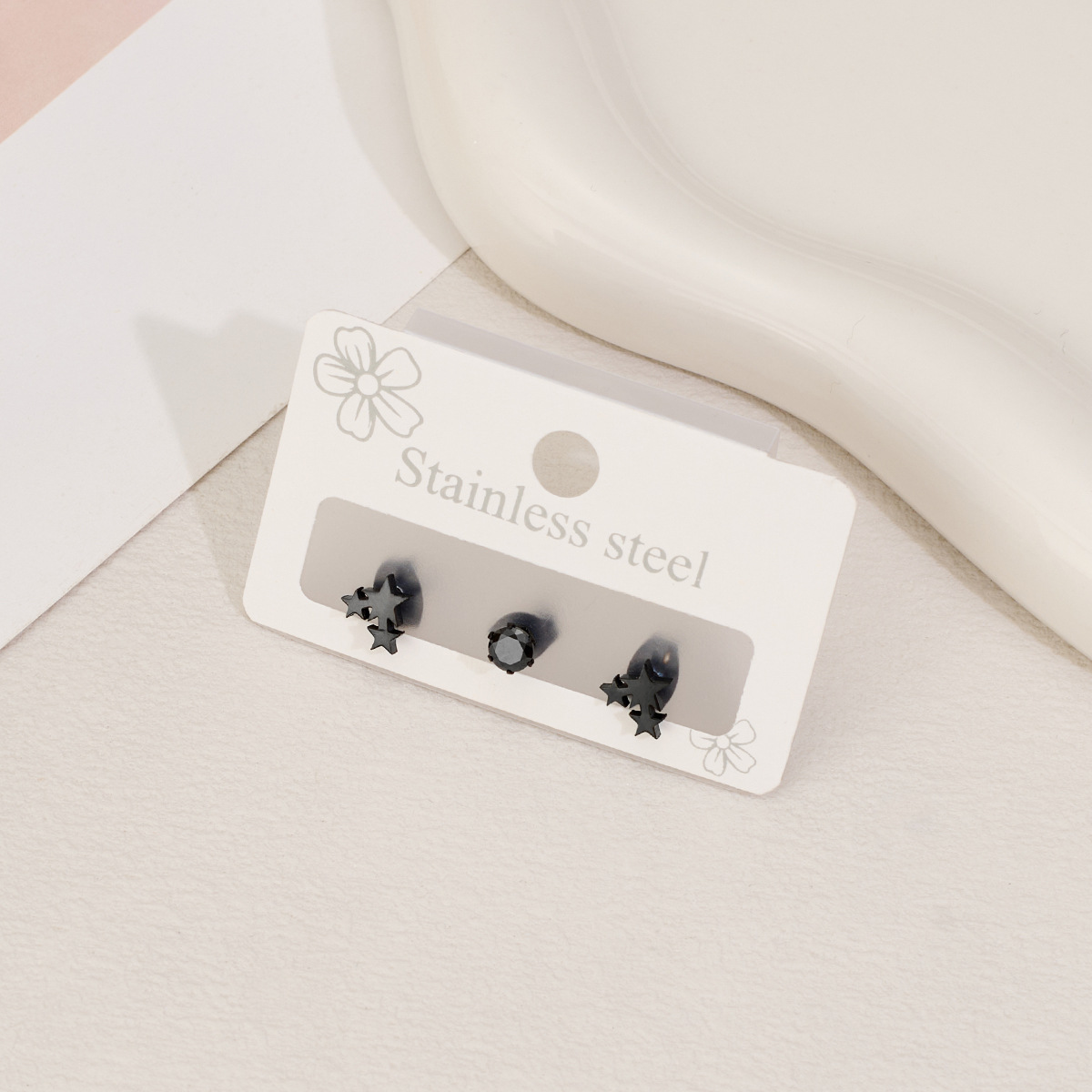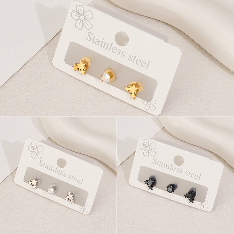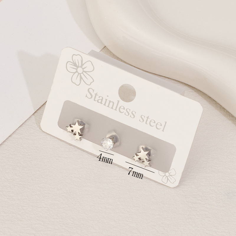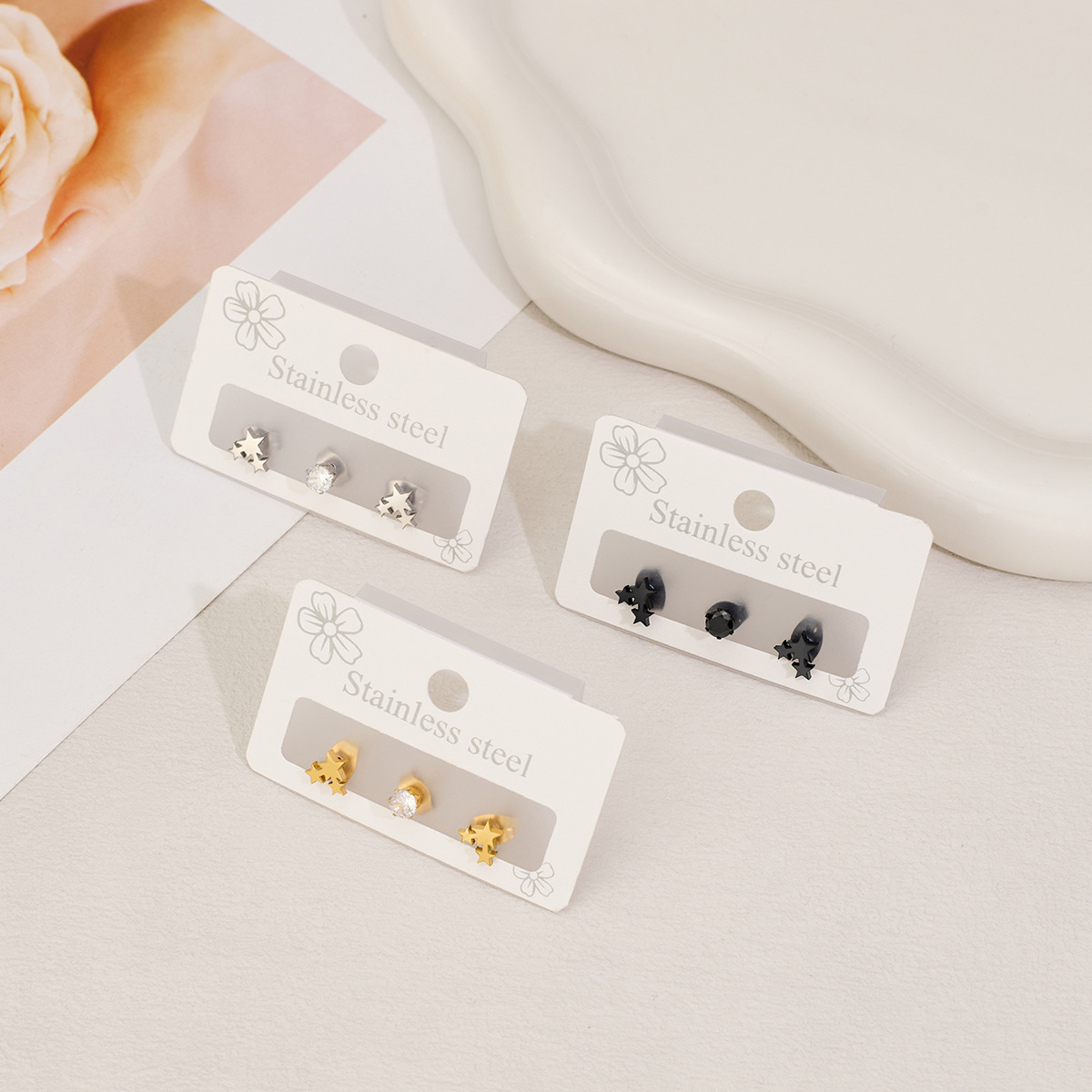Stainless Steel Cubic Zirconia Stud Earring, 304 Stainless Steel, with Cubic Zirconia, Star, plated, three pieces & fashion jewelry & for woman, more colors for choice, Sold By Set
