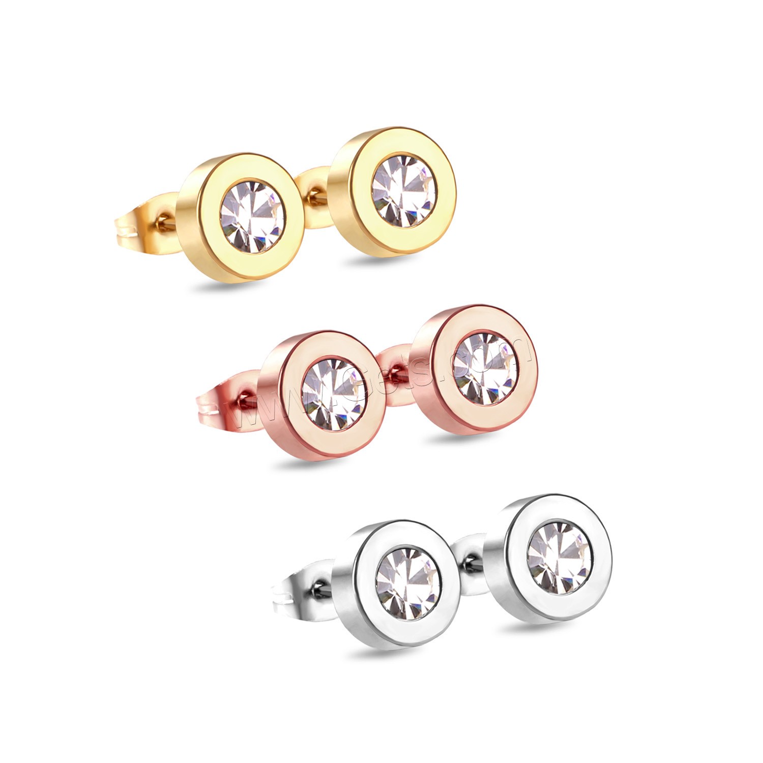 Stainless Steel Cubic Zirconia Stud Earring, 316L Stainless Steel, plated, with cubic zirconia 7mm, Approx