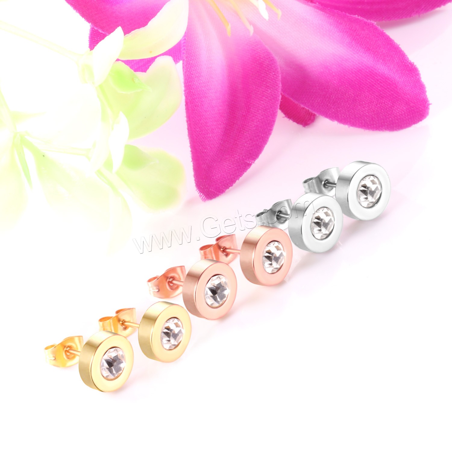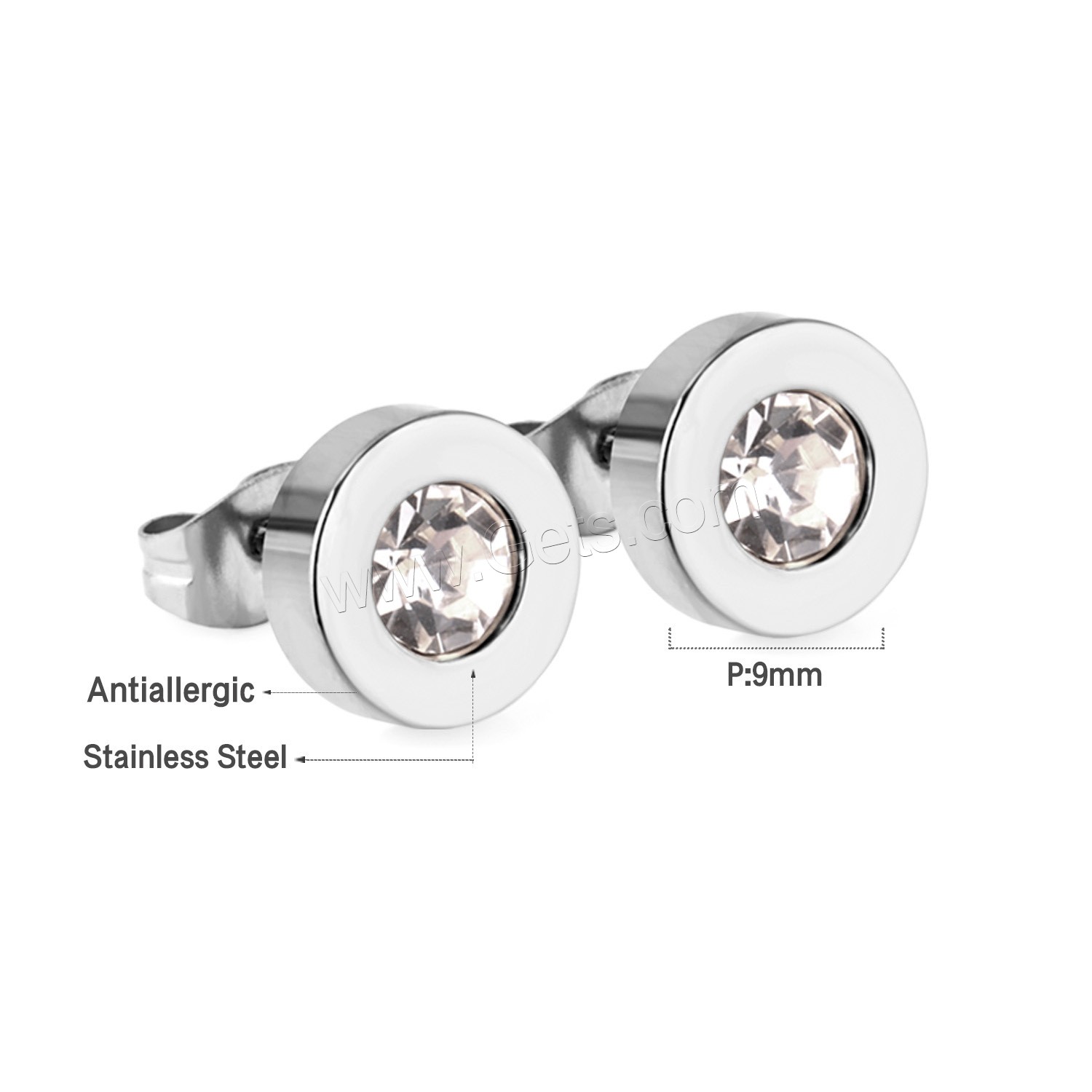 Stainless Steel Cubic Zirconia Stud Earring, 304 Stainless Steel, Vacuum Ion Plating, fashion jewelry & micro pave cubic zirconia & for woman, more colors for choice, 9mm, Sold By Pair