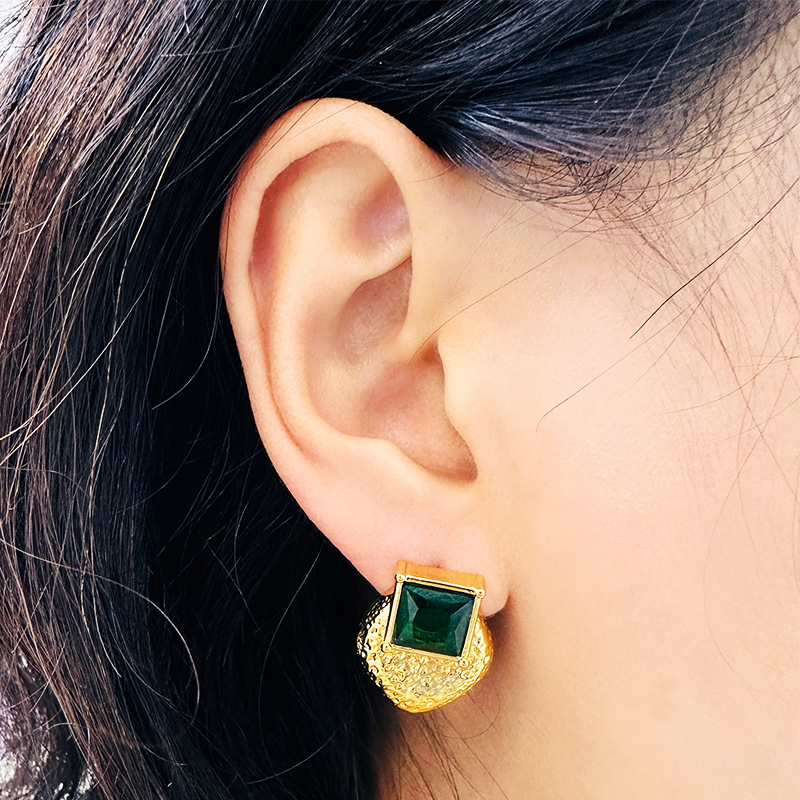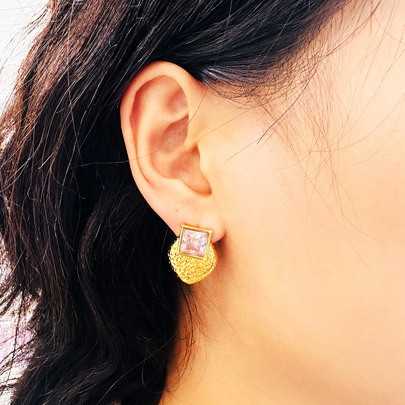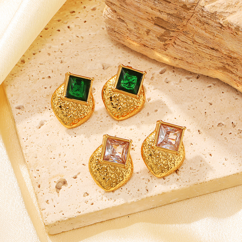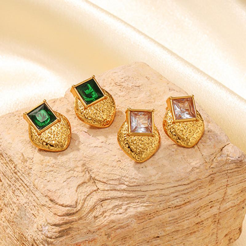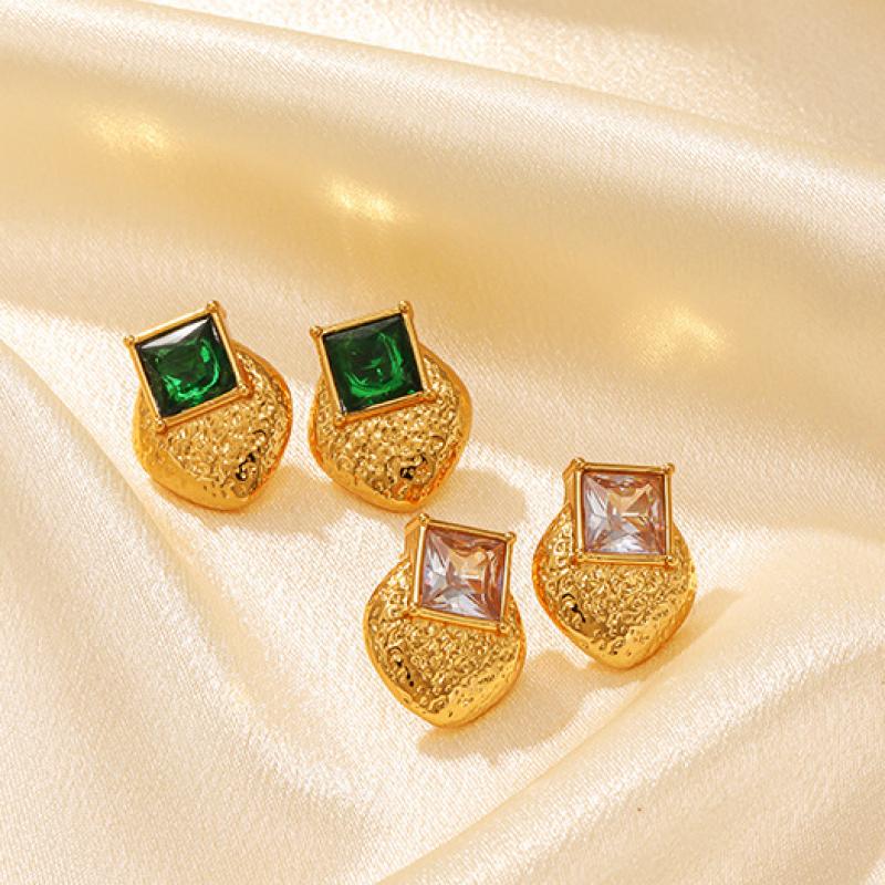 Stainless Steel Cubic Zirconia Stud Earring, Square, with cubic zirconia
