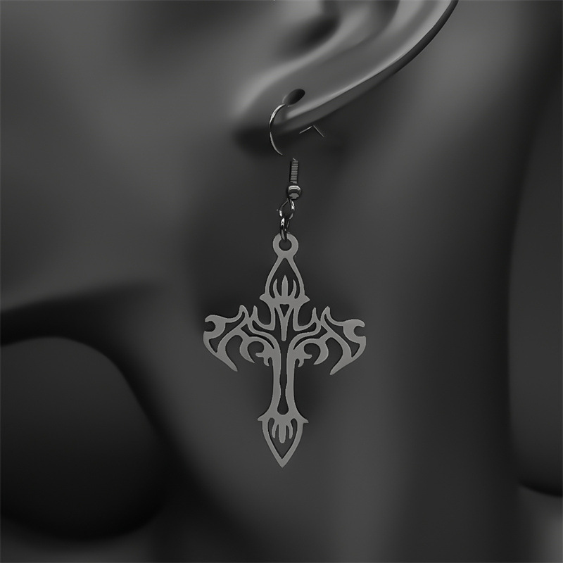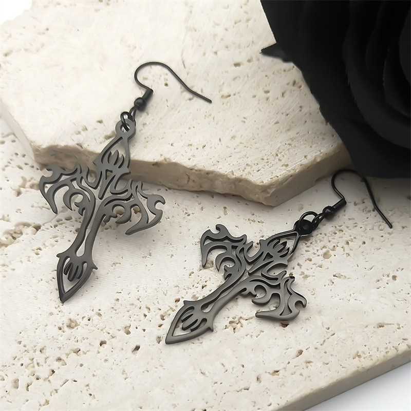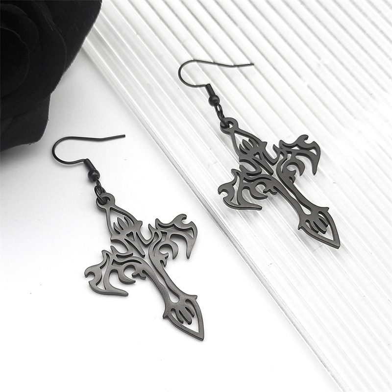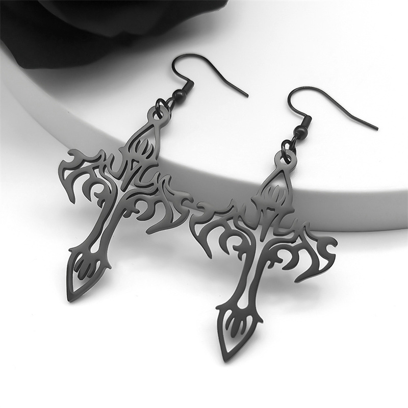 Stainless Steel Drop Earring, 304 Stainless Steel, Cross, plated, fashion jewelry & for woman & hollow, black, Sold By Pair